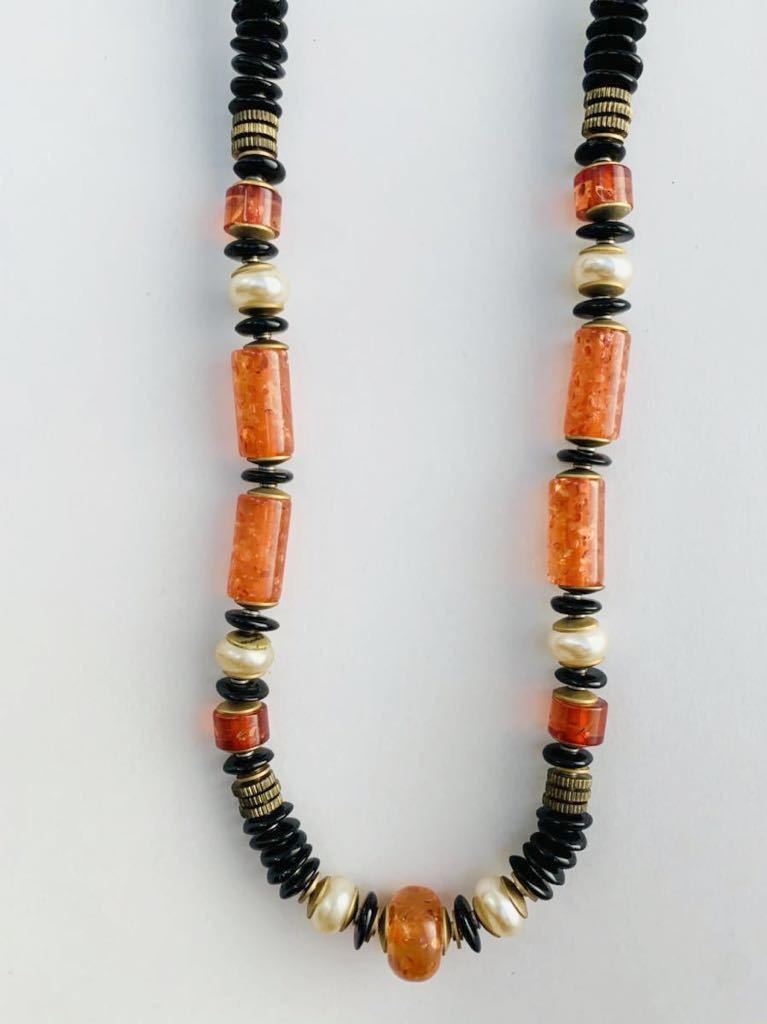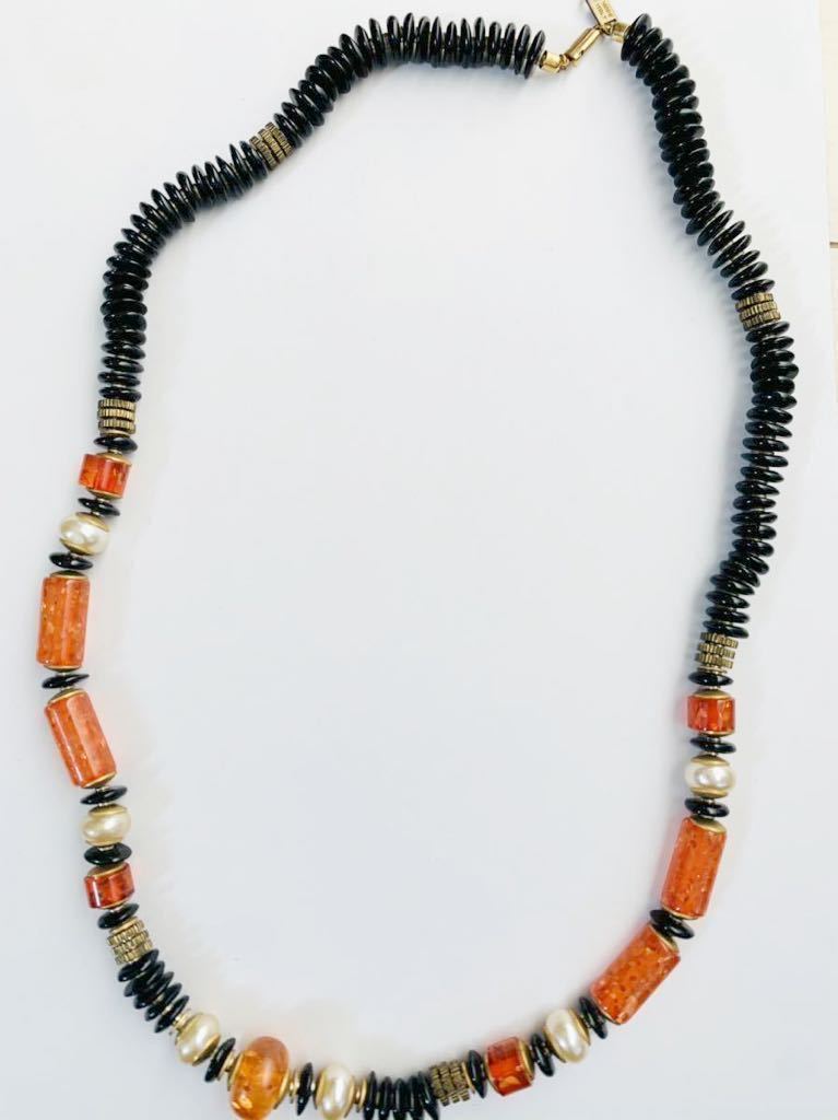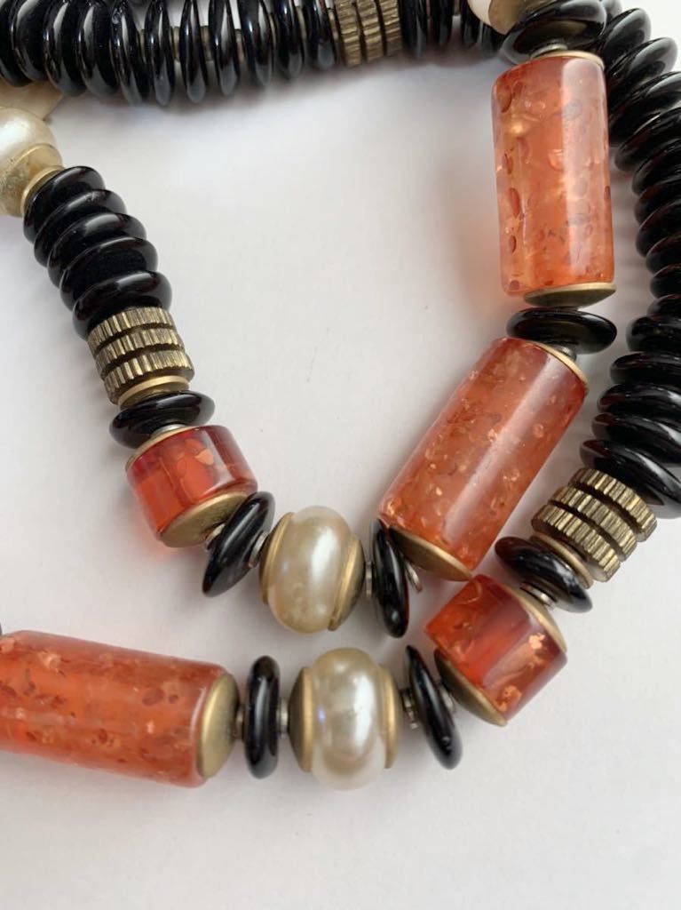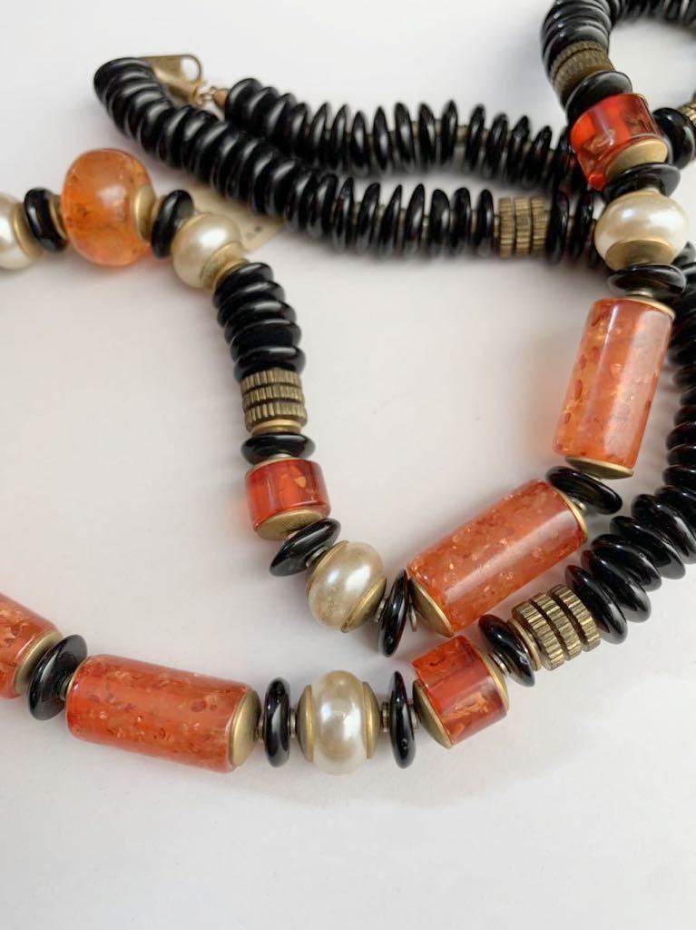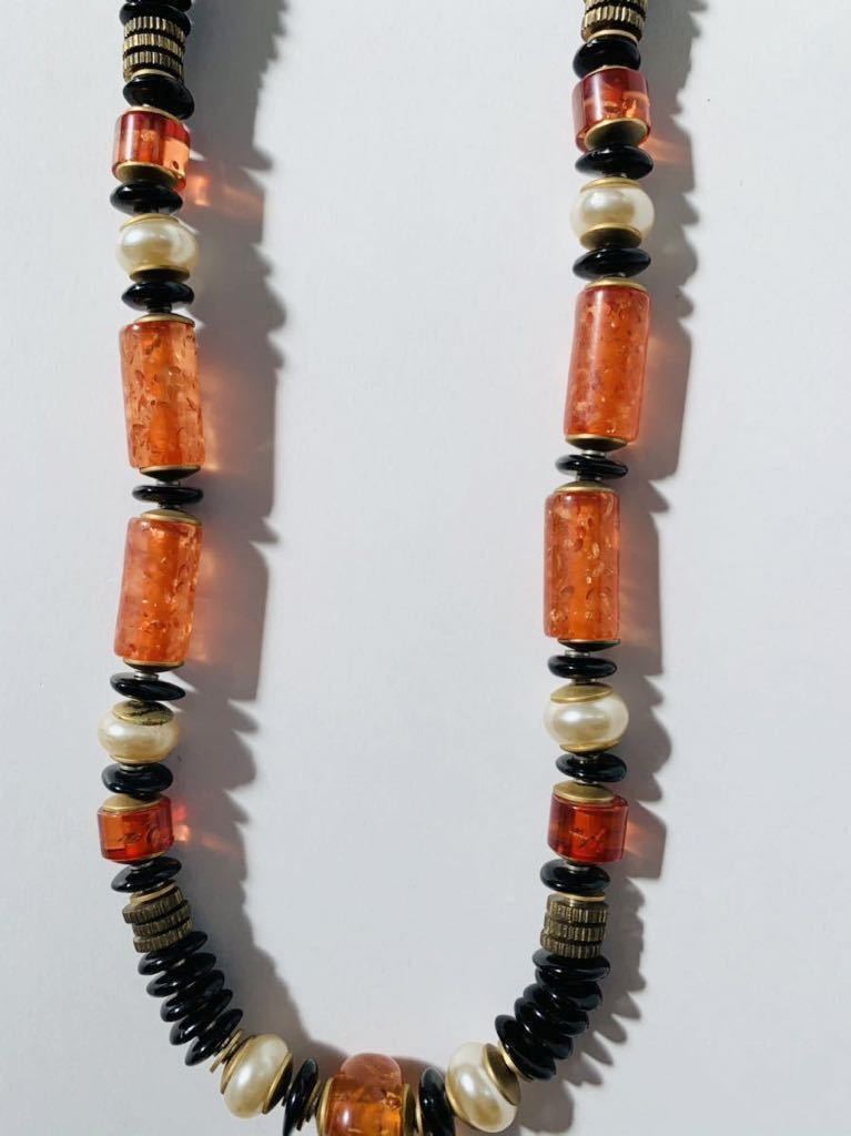 ヴィンテージらしい個性的で重厚感のあるネックレスのご紹介です。母が持っていたもので、大掃除の際に出てきたそうです。30年以上前にデパートで購入したものだったようです。ヴィンテージデザインがトレンドの今こそ、ご活用いただきたい素敵なネックレスです。
