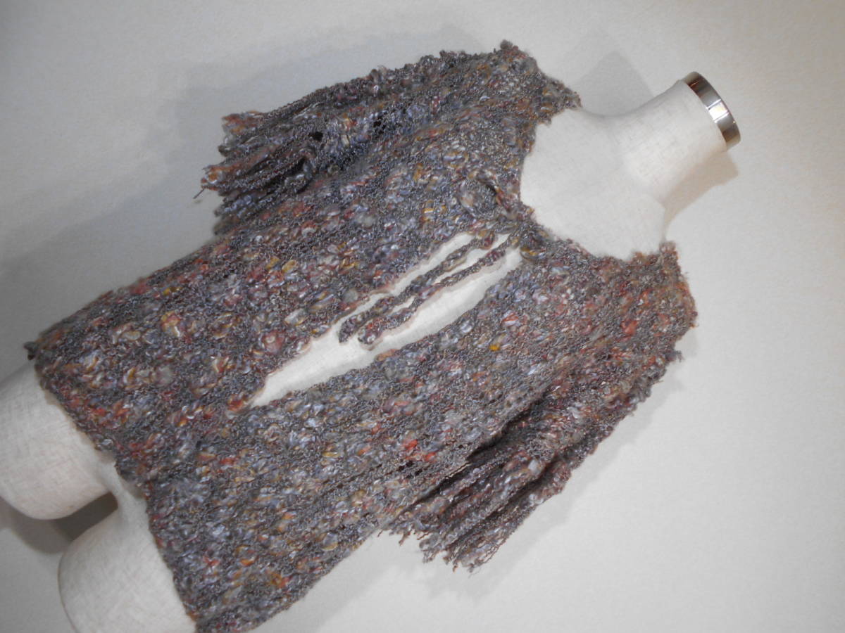 | L447■ハーディエイミス★モヘヤ混/MIXベージュ★レース編みカーディガン■ | |||||||||||
