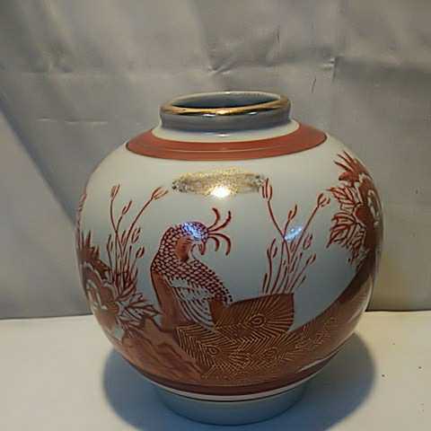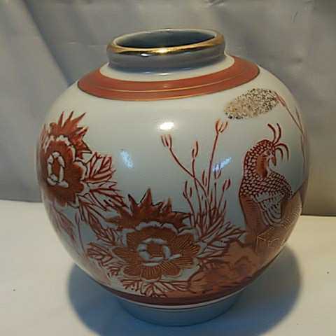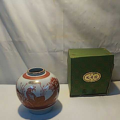 九谷焼 九谷美泉 花器 花瓶 一輪挿し 金縁 花柄 鳥 箱入り未使用品