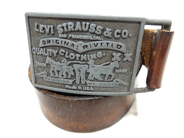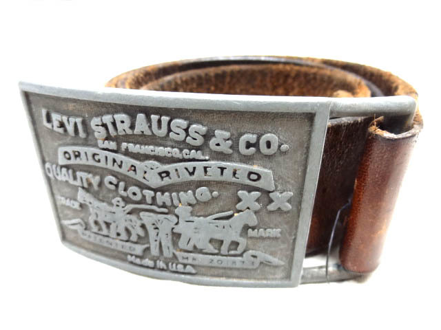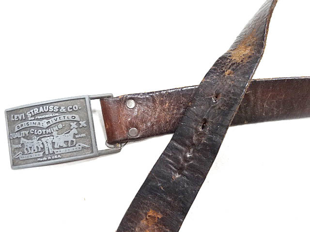 ビンテージ LEVIS リーバイス 70S ツーホース パッチ ロゴ 金属 スクエア バックル レザー ベルト 雰囲気 デニム レア 希少 珍品 販促