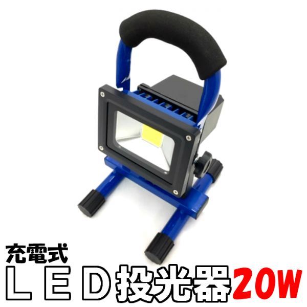 LED投光器COB 20w ブルー 充電式 作業灯 防災停電懐中電灯 屋外 屋内 作業整備用 夜間作業 キャンプ 軽量ハイパワー防水防塵