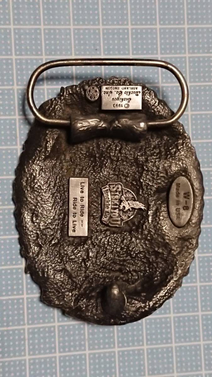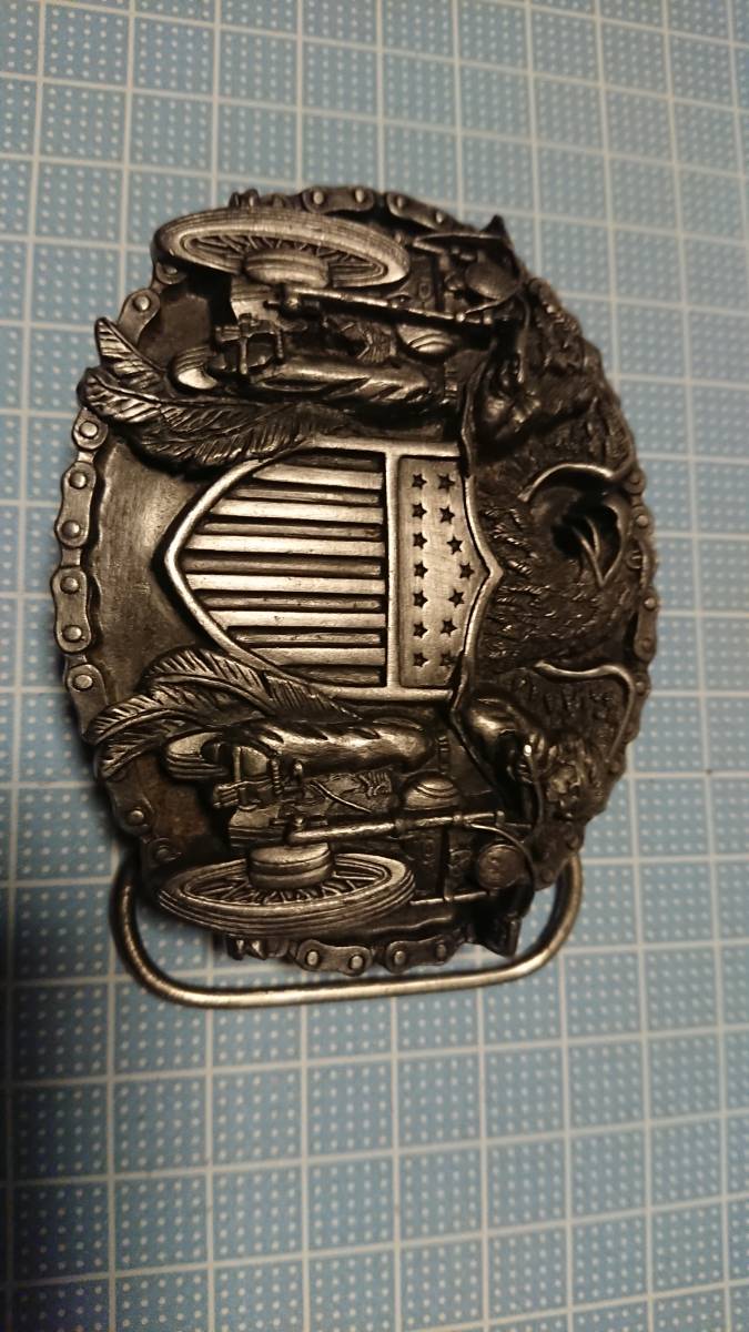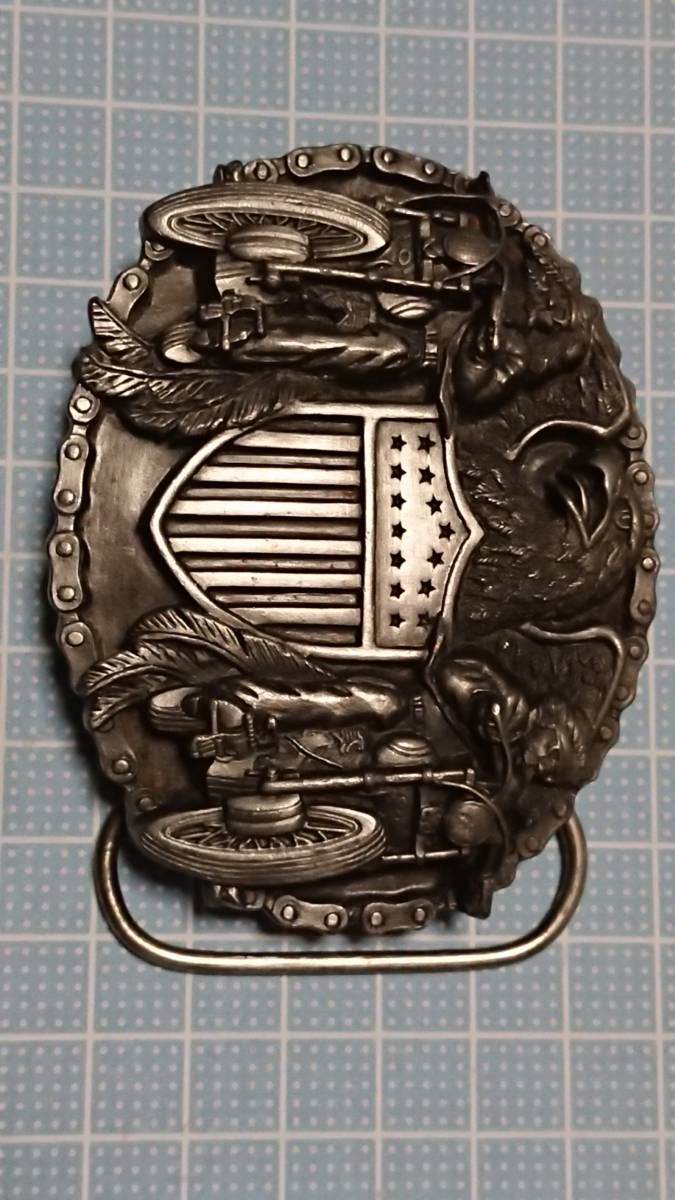 1993年シシキョウ製。重厚で繊細な本場アメリカ製のベルトバックルです。ベルト幅45ミリ強まで可。バックルには製造・流通過程で付くスレやアタリなどがある場合がございます。苦情・返品なしでお願いいたします。ゆうパック60サイズ、レターパックプラス、レターパックライト、定形外郵便(保証なし)で発送させていただきます。210g。