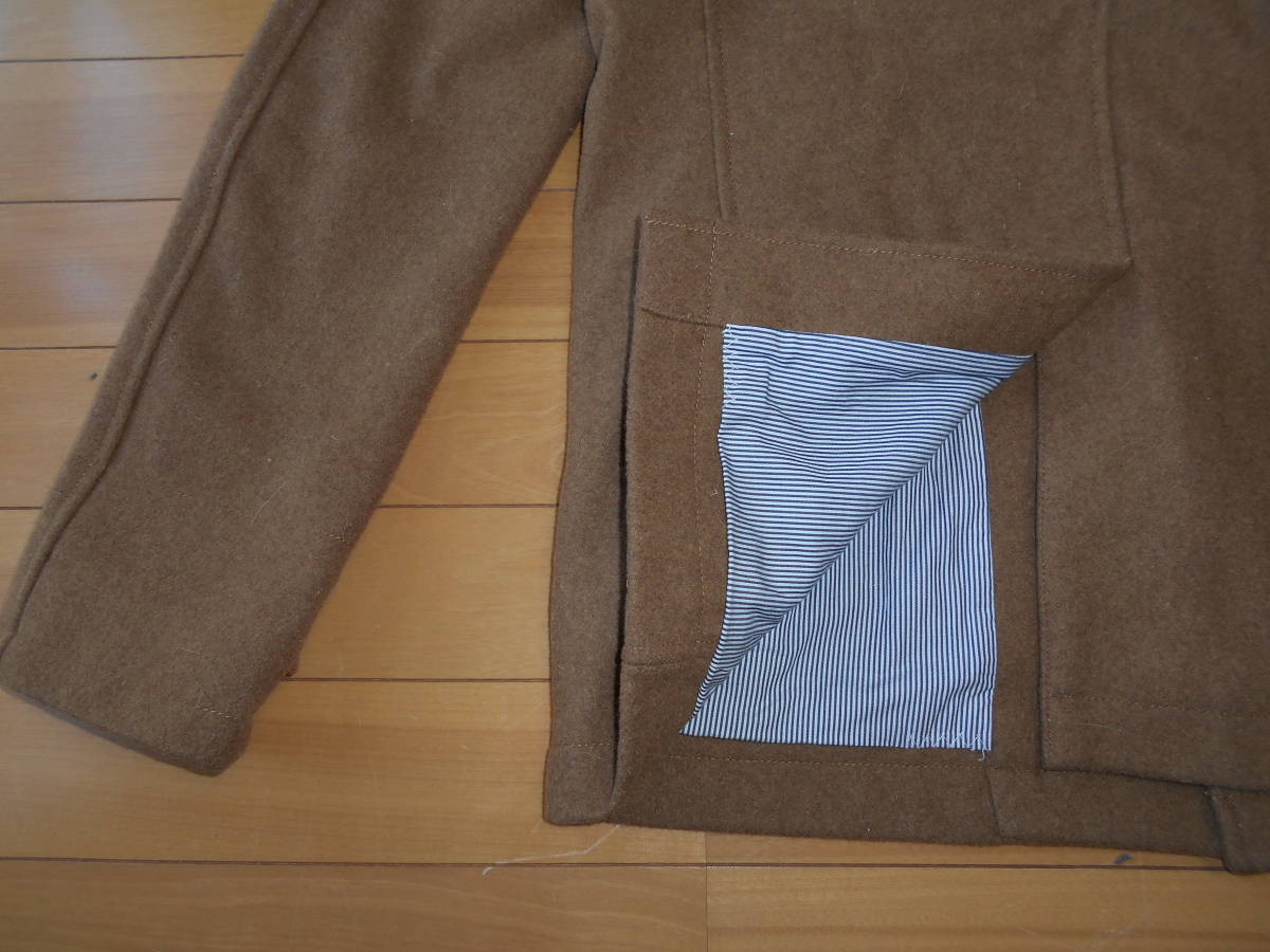 台襟付きのラウンドカラー、5個ボタンオープンのジャケットタイプのショートコートになってます。