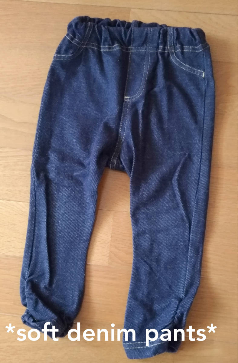 着回し◎ インディゴ 裾くしゅ かわいい★ やわらか デニム パンツ ズボン スパッツ レギンス 80