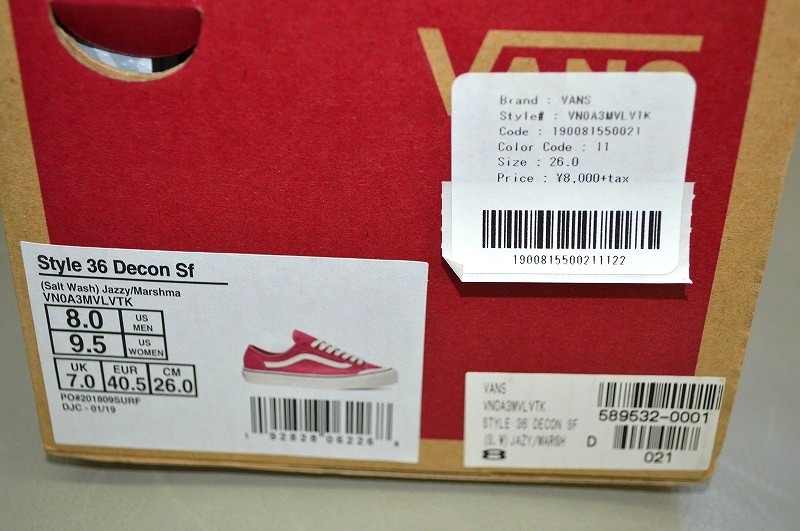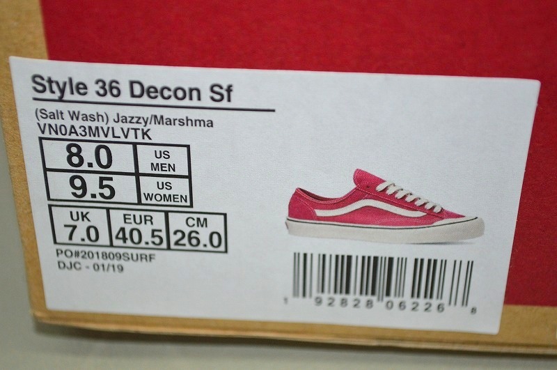 新品未使用 VANS バンズ Style 36 Decon Sf ウルトラクッシュ ピンク VN0A3MVLVTK Jazzy Marshmallow オールドクスール US8 26センチ