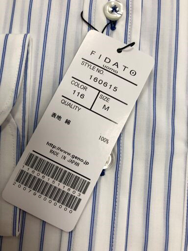 FIDATOuomo/フィダート/日本製/長袖/カジュアルシャツ/綿100%/Mサイズ