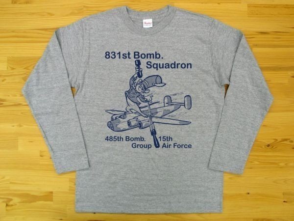 第831爆撃飛行隊 杢グレー 5.6oz 長袖Tシャツ 紺 S ミリタリー ねずみ U.S. AIR FORCE