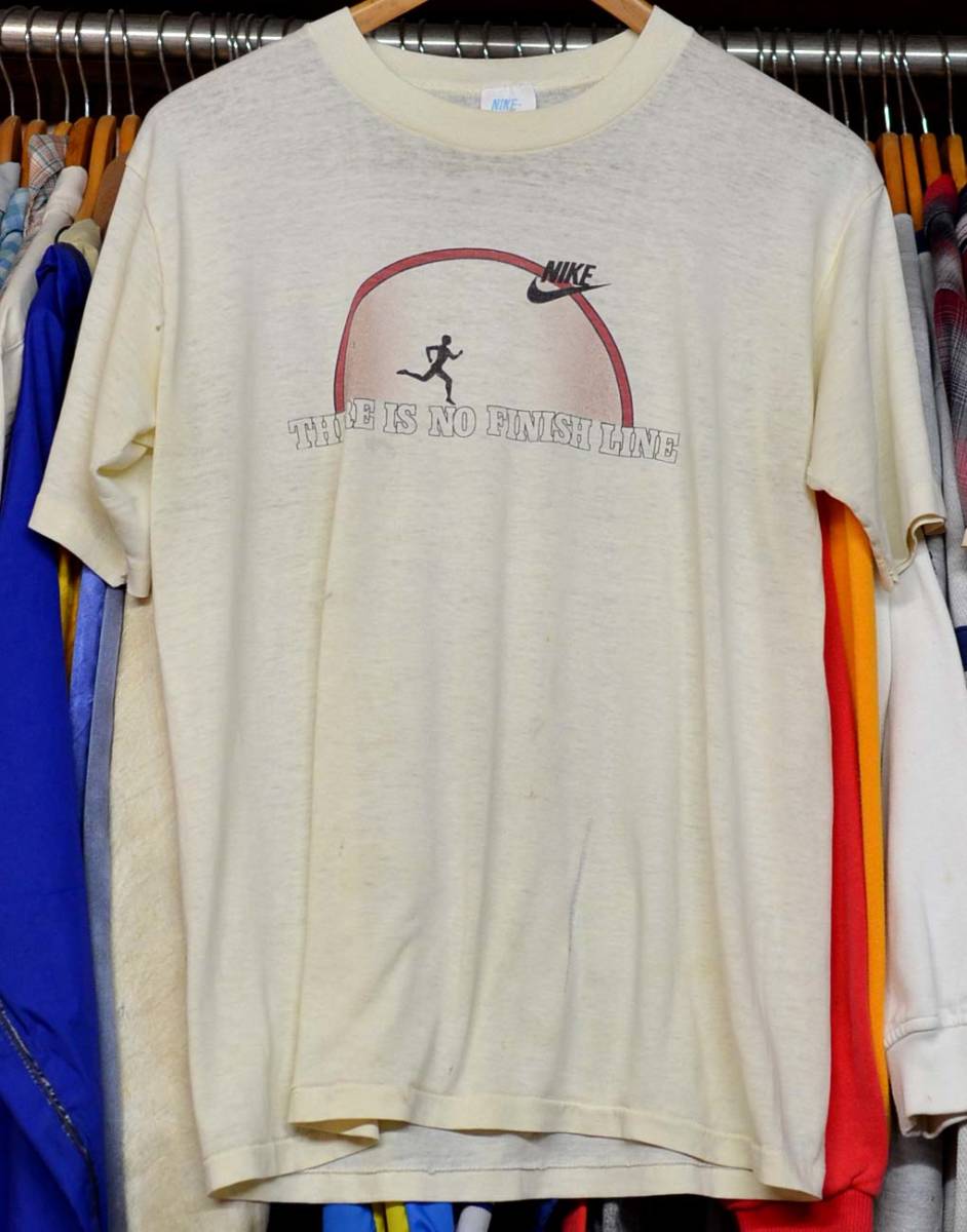 70'sと思われるヴィンテージ、オリジナルのNIKEオレンジタグマラソンTシャツです。レプリカ、復刻ではありません。コットン50%、ポリ50%のアメリカ製です。 所々ダメージがあります。全てではありませんが、写真を撮りましたのでご確認ください。古着好きの方でしたら普通に着用いただけると思います。 オールドナイキファンの方は是非いかがでしょうか。