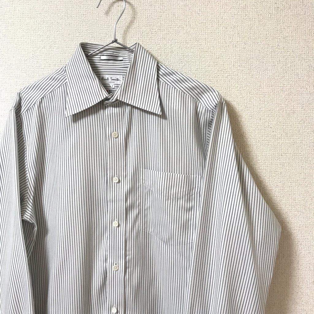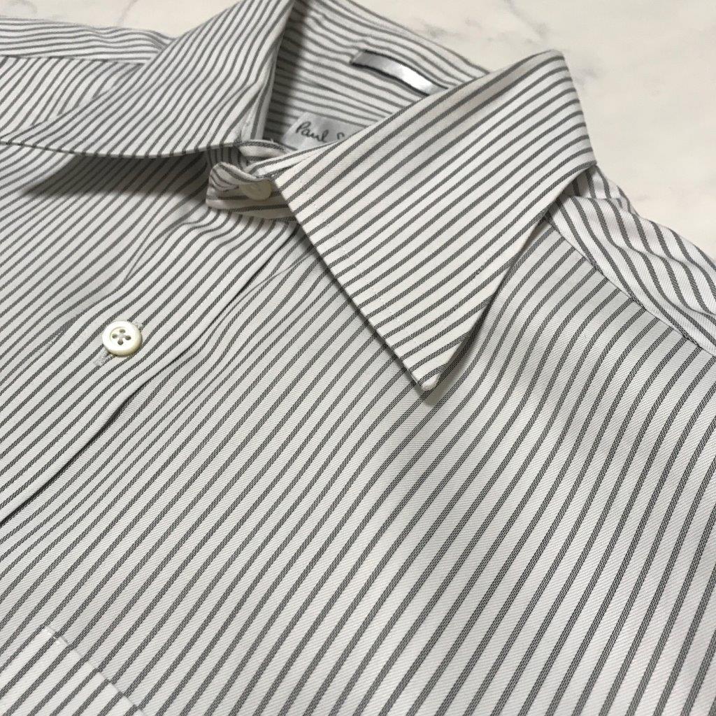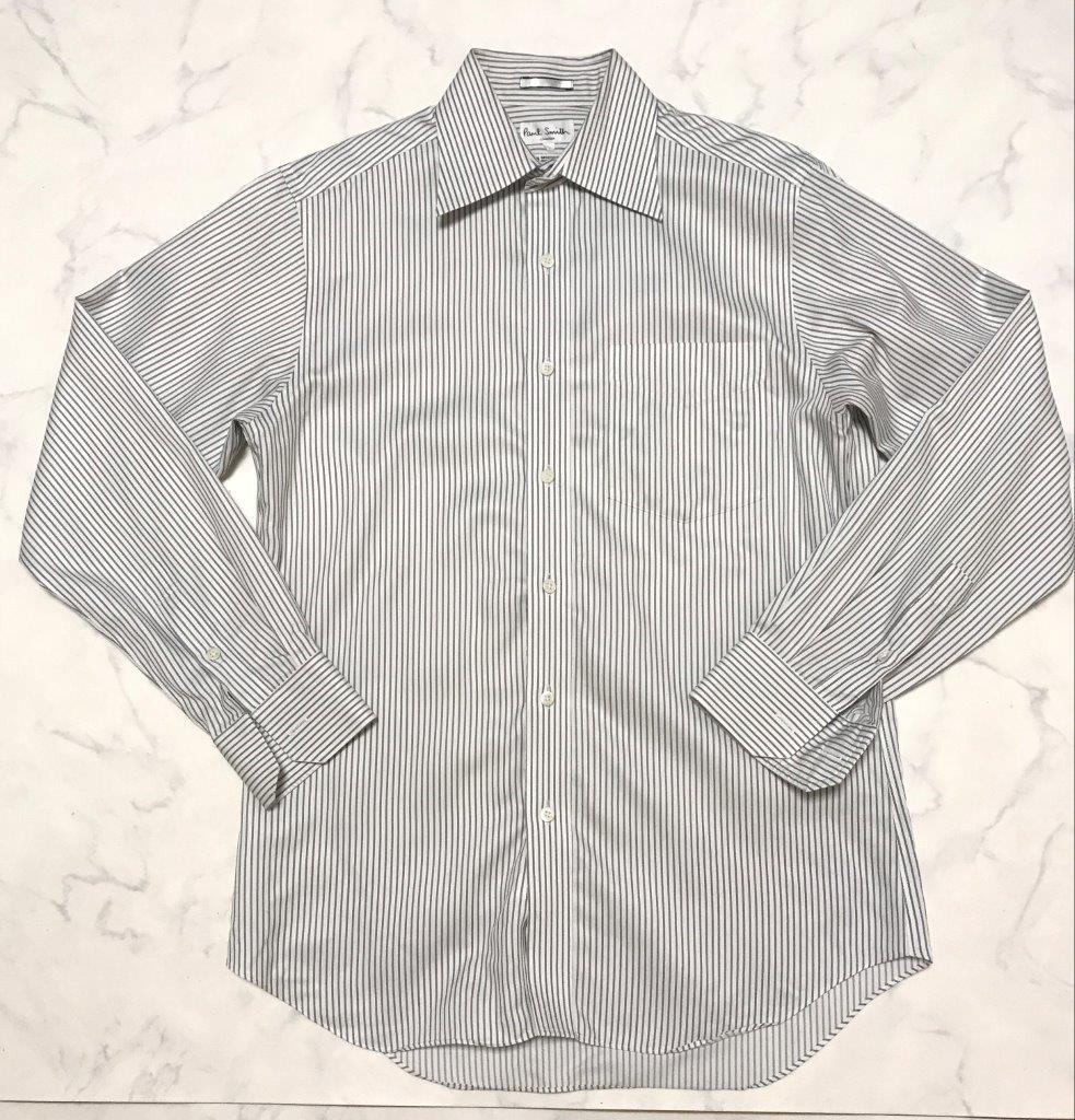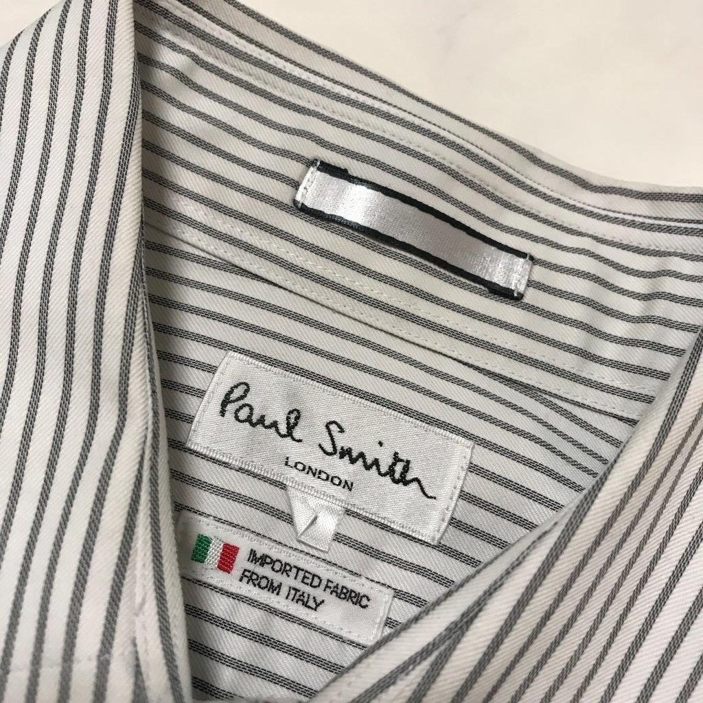 ★Paul Smith ポールスミス★メンズ ストライプ柄 長袖 シャツ ワイシャツ カフスシャツ size M 白 ホワイト 管:A:11