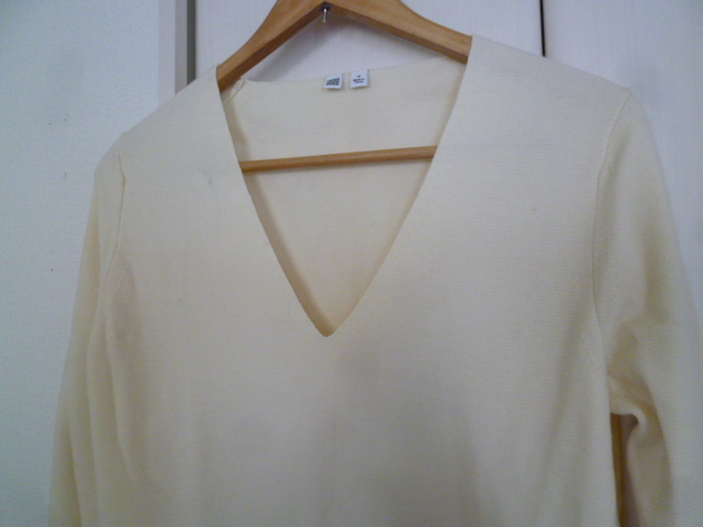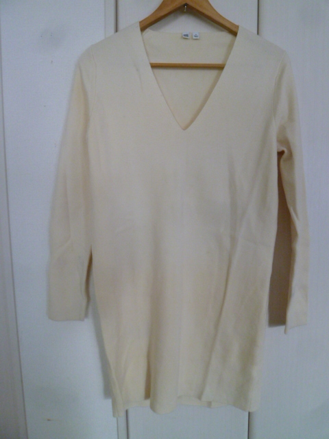 UNIQLO U/ユニクロU○オフホワイト深いVネックロング丈ウールセーターニットワンピースM/チュニック長袖○117