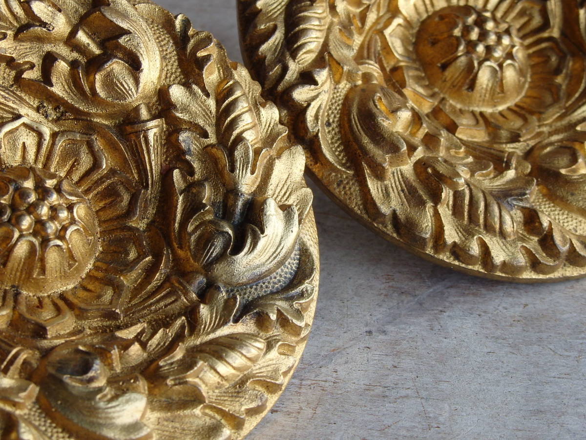 フランスアンティーク 2個セット デコ 1900年 チェスト 装飾 家具 扉 ブロンズ 青銅 鍵穴 古い レリーフ オルモル p