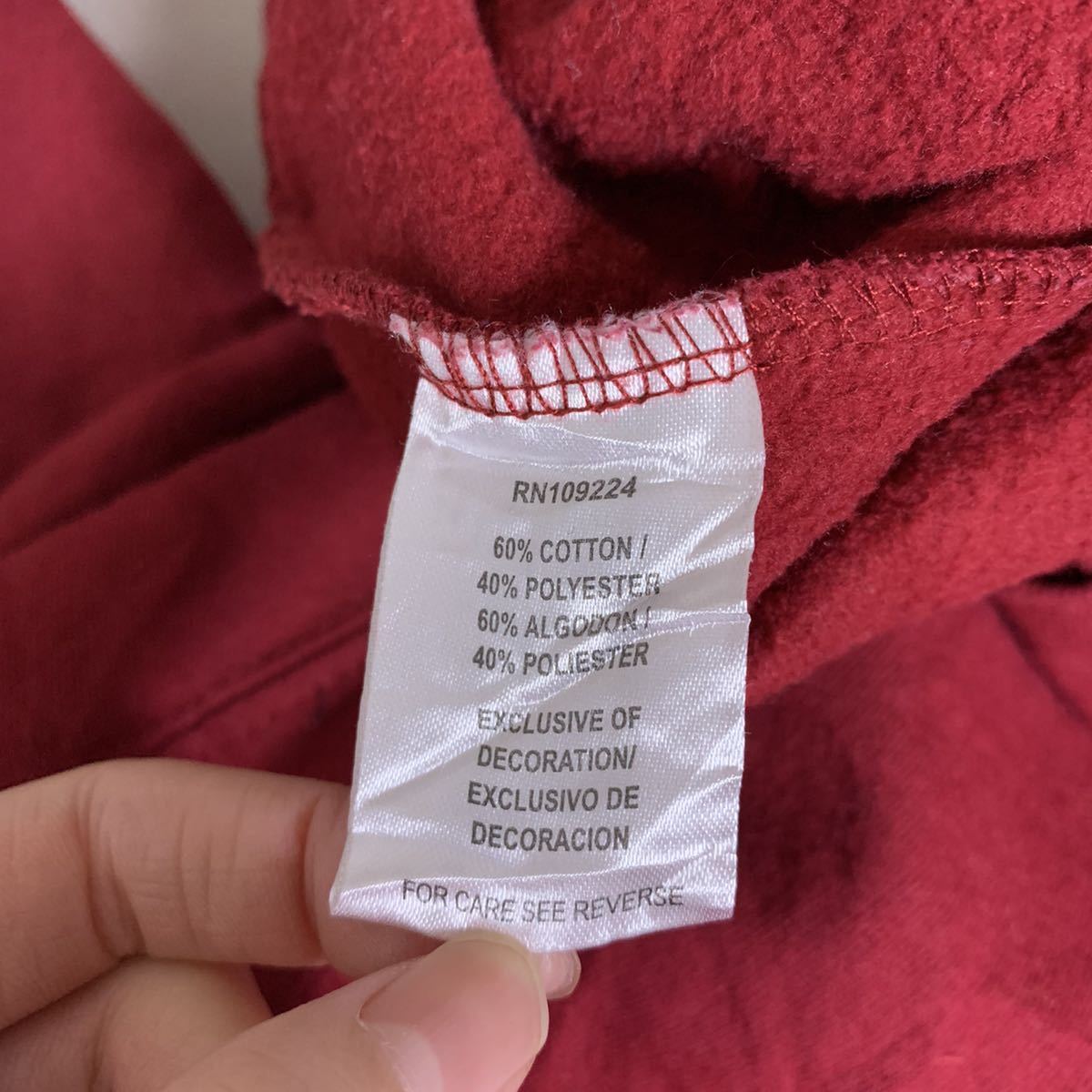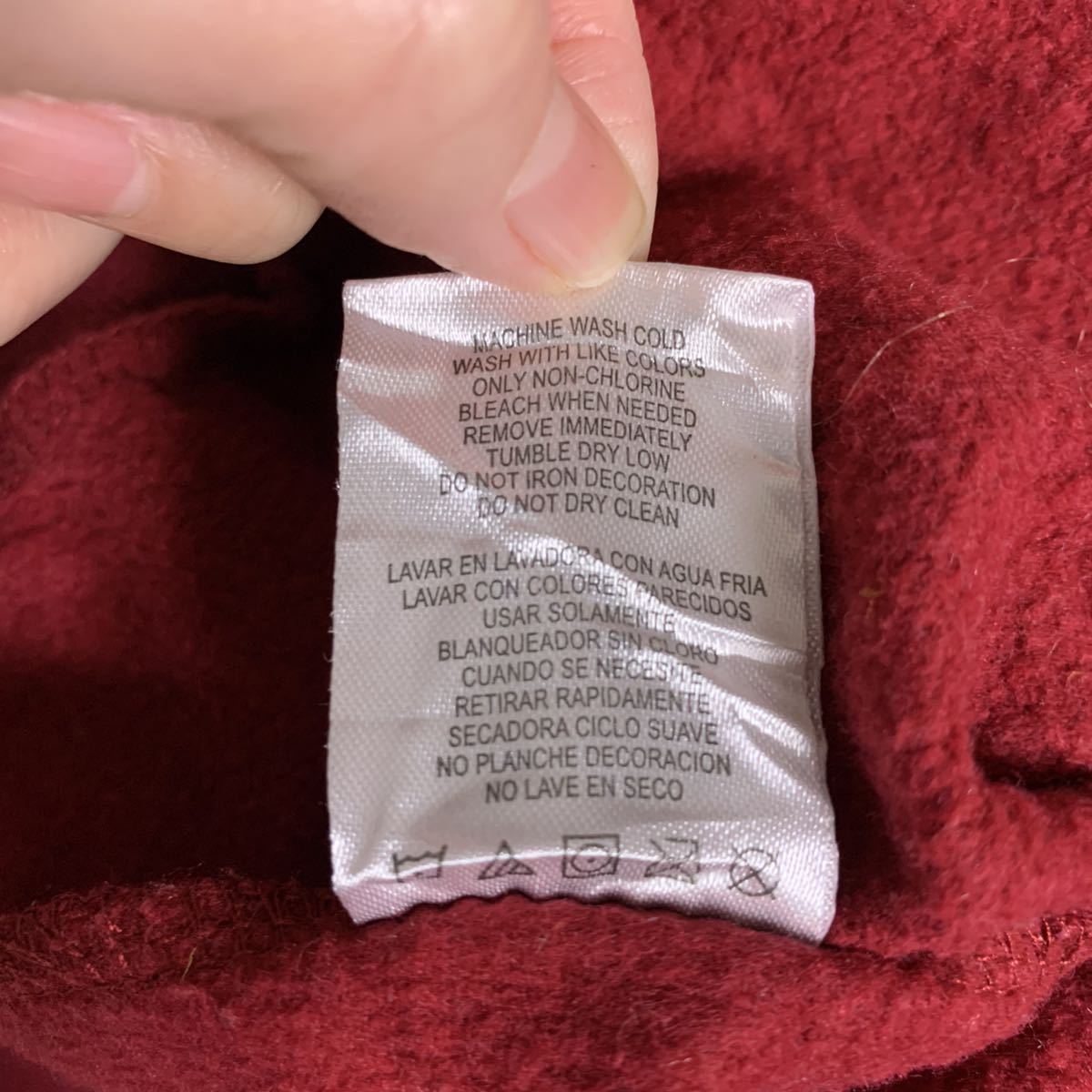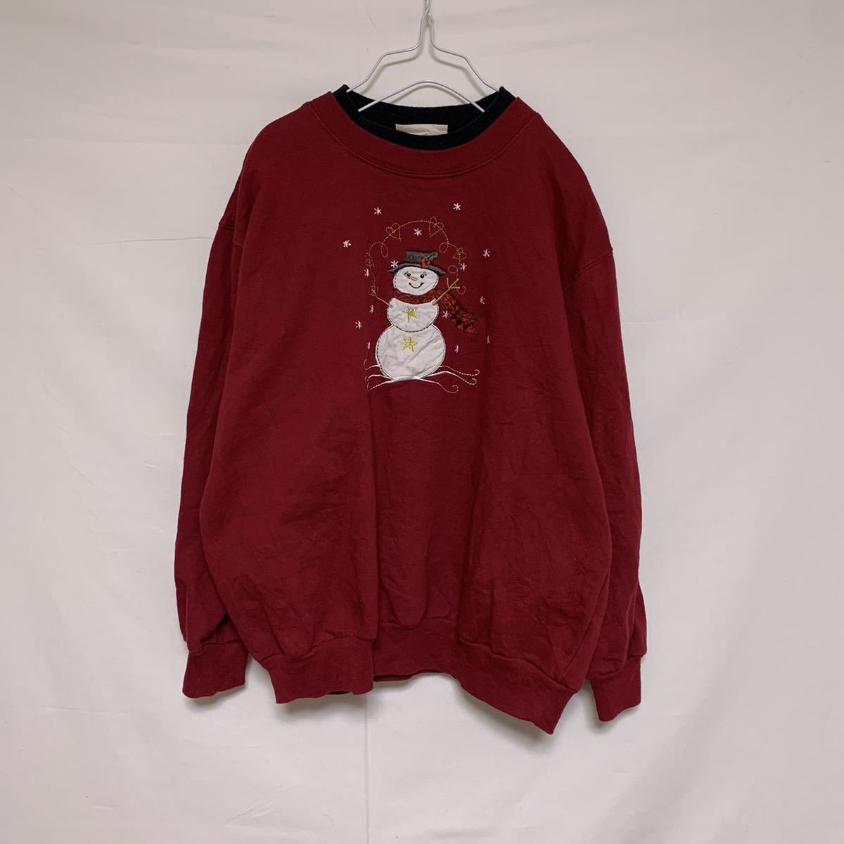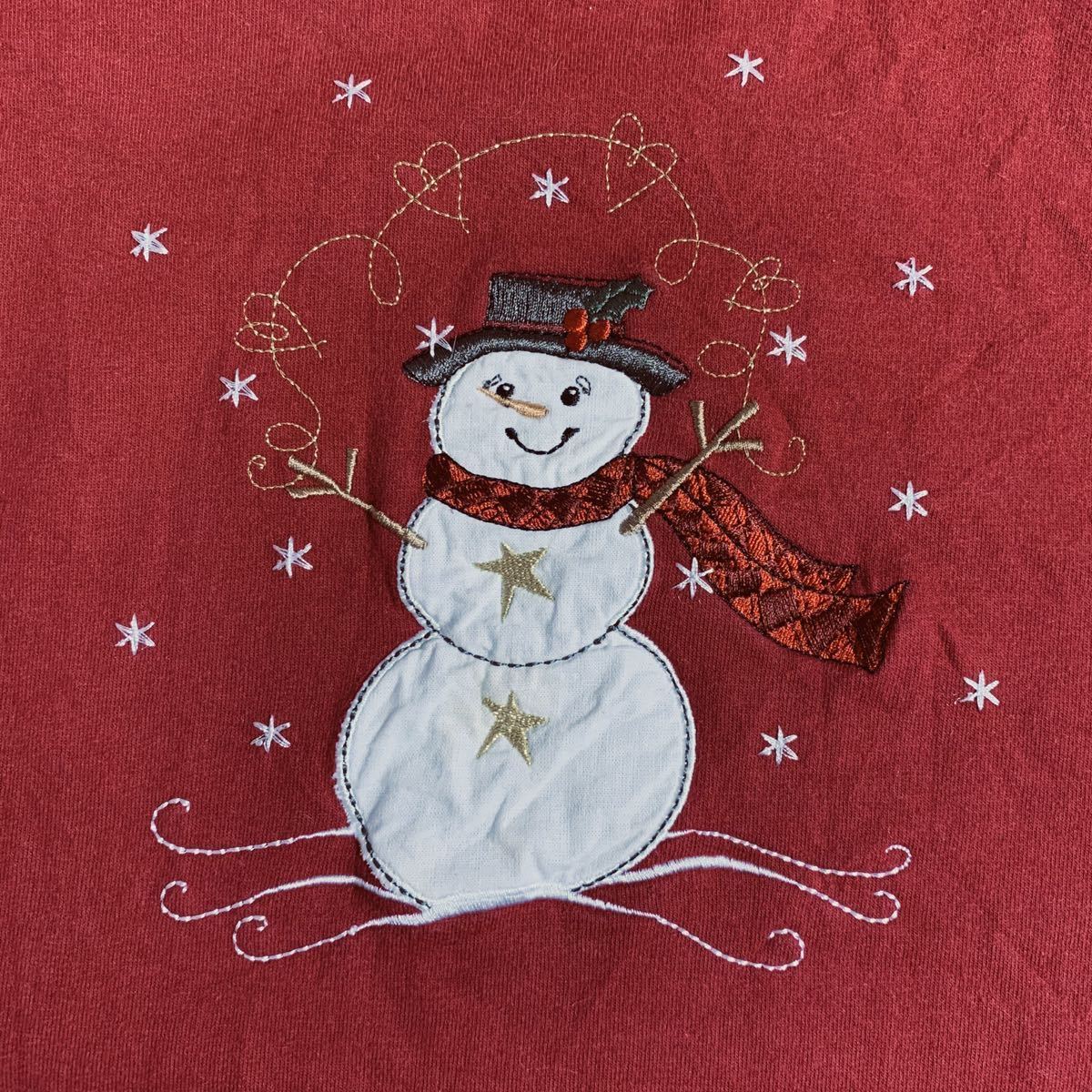 落ち着いた赤色の生地に雪だるまの刺繍がとっても可愛いです。