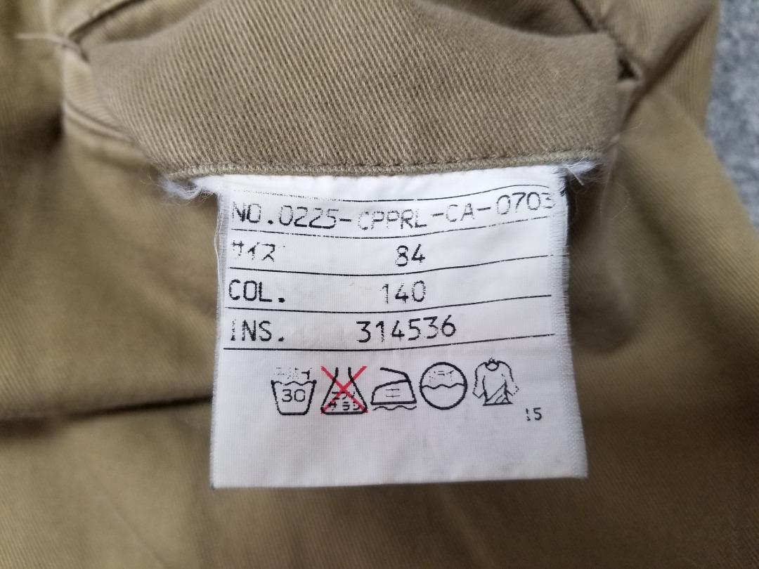 合わせやすい薄茶色の一着で、サイズ表記は84(実寸w33程度)です。