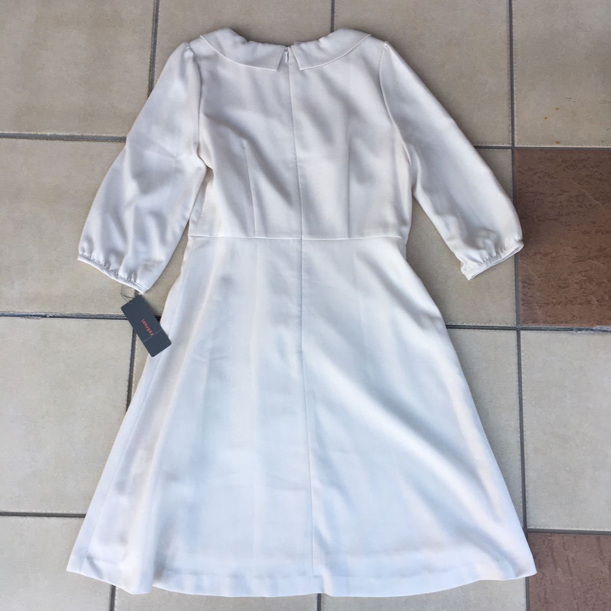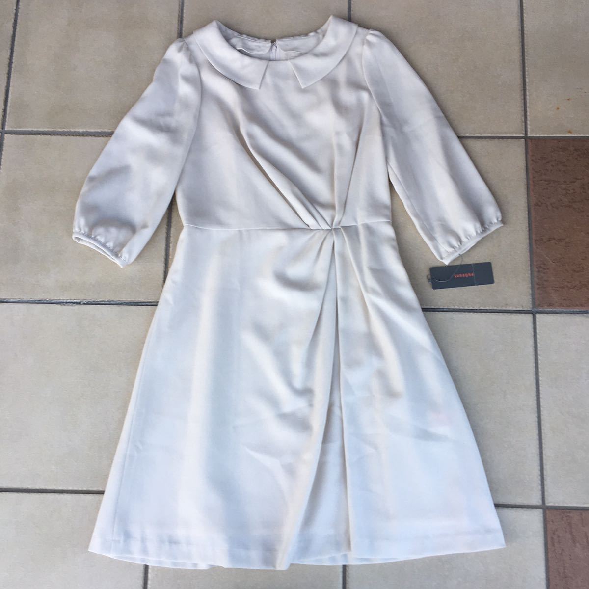 新品タグ 未着 スーナウーナ SunaUna タックギャザー丸衿切り替えワンピース