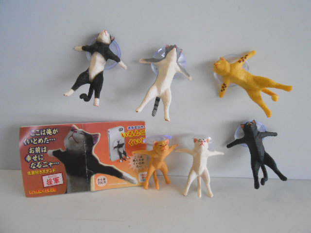 1.シロ(黒まゆ) 2.クロ(白ヒゲ) 3.茶 4.ヒョウ 5.サバトラ 6.くつした ◇ここは俺がくいとめた... お前は幸せになるニャ... 吸盤付きスタンド 援軍 |