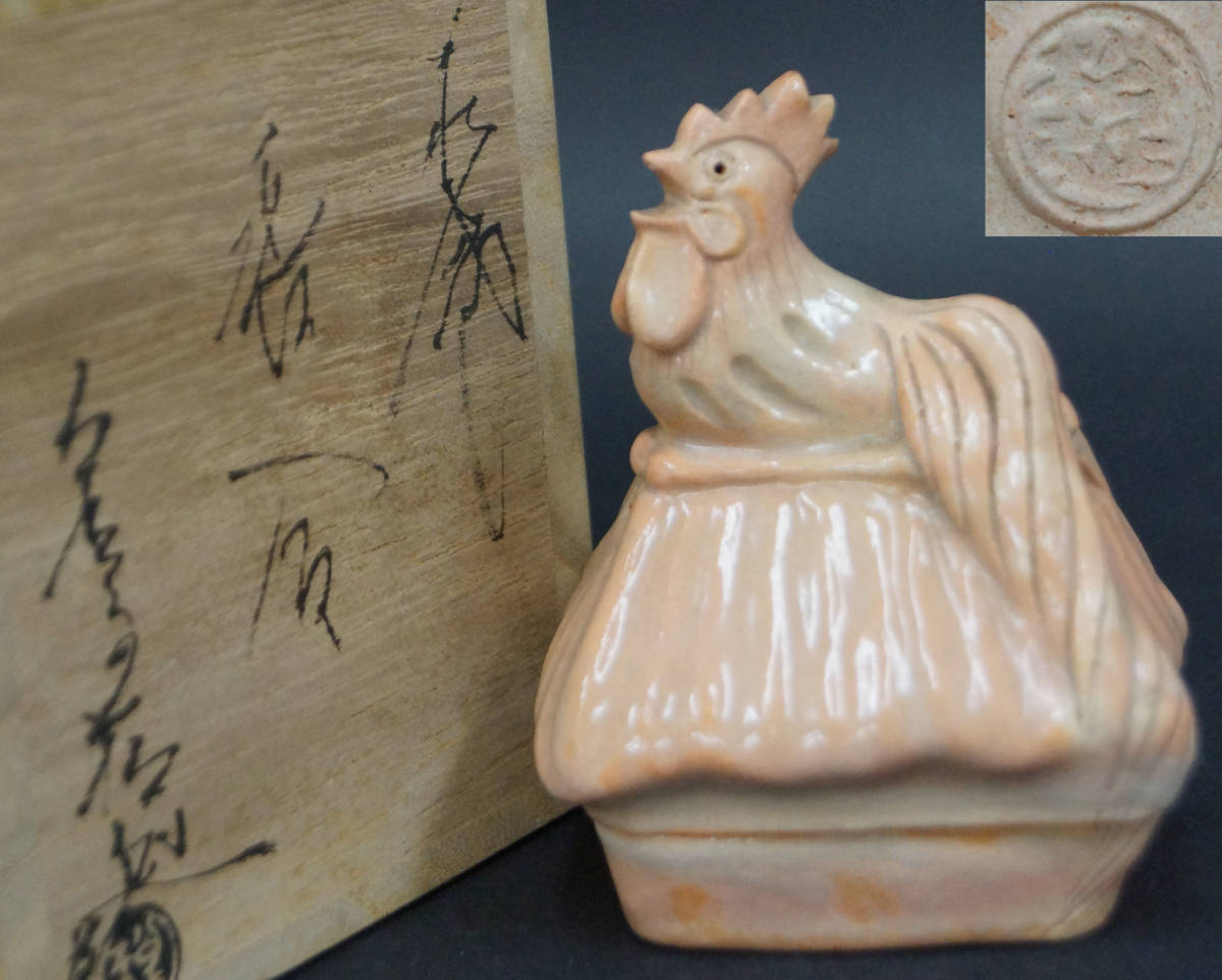 萩焼 旭雲山 松延窯 金子松延造 鳥香合 萩香合 箱付 / 香道具 茶道具 サイズ(約): 長さ6㎝、幅5㎝、高さ7.5㎝、重さ116g |
