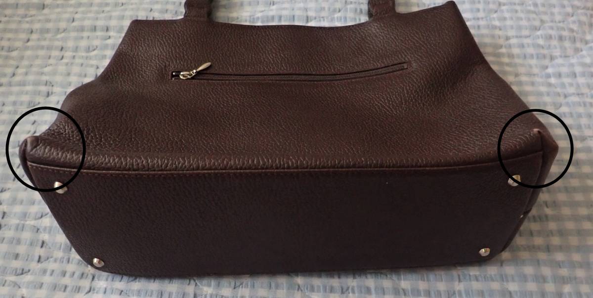 4枚目の写真の通り底の四隅にスレがあるのと、5枚目の写真の通り内側に破れがあるのと、全体的に使用感があるため、【訳あり】で出品しています。