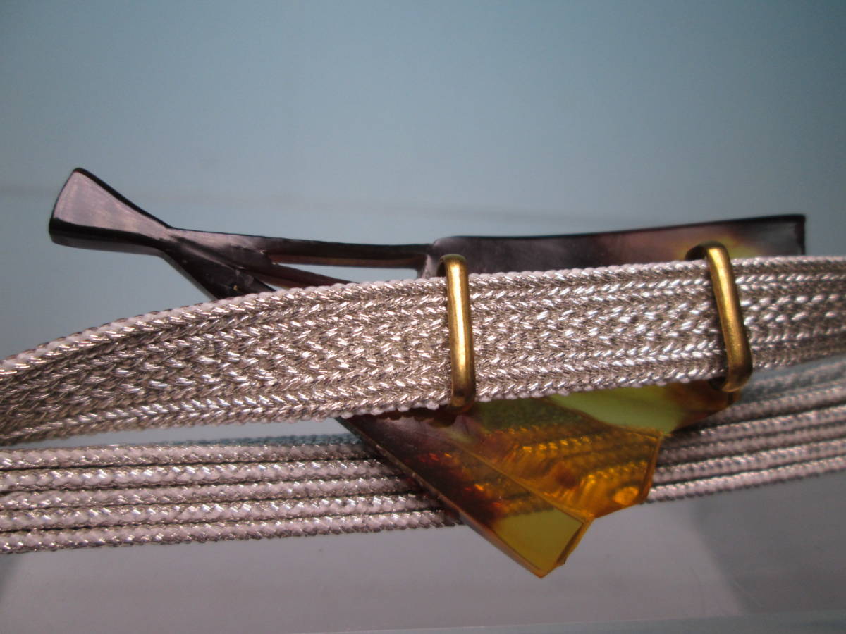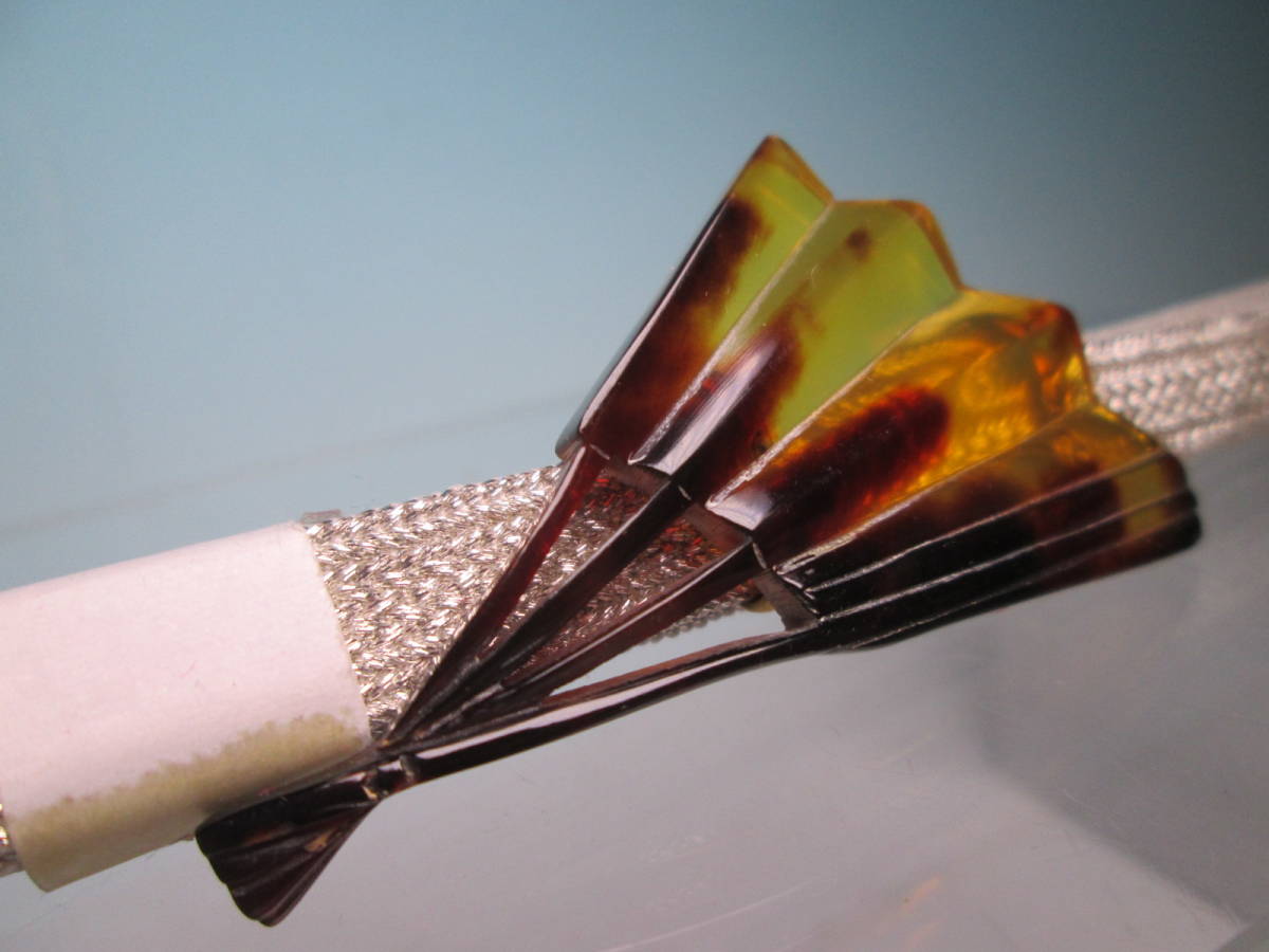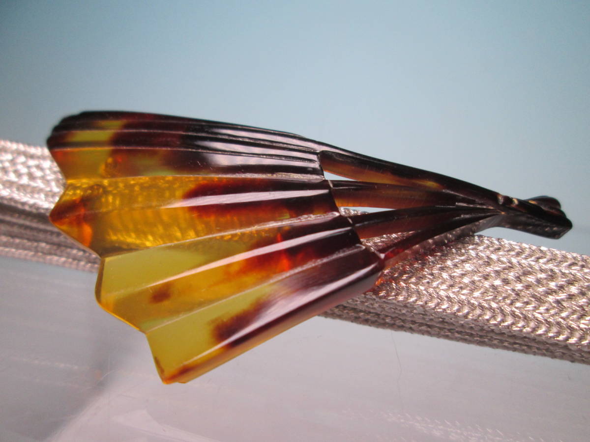 ☆本鼈甲 扇面の帯留め 銀糸帯締め付き 未使用品