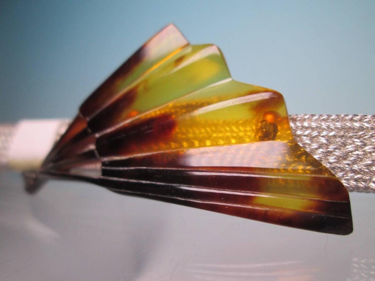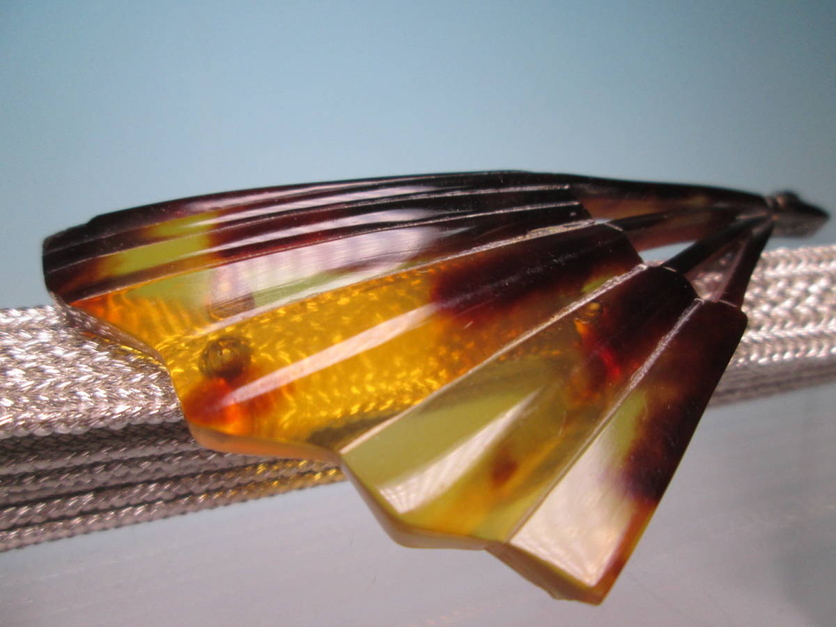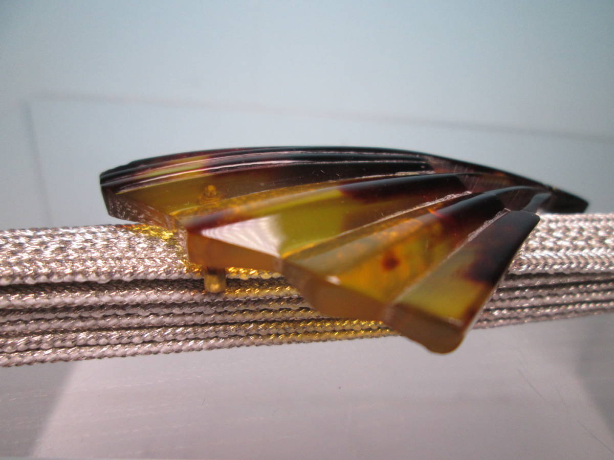 ☆本鼈甲 扇面の帯留め 銀糸帯締め付き 未使用品