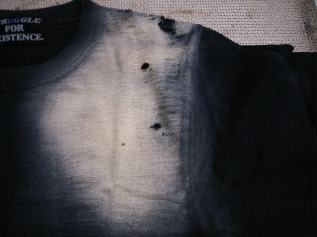 UG. ブリーチダメージ加工Tシャツ ブラック 表記サイズなし mad bunny/マッドバニーです。実寸で着丈約62cmX身幅約46cmX袖丈約19cmです。中古品で目立たない汚れ、シミ有ると思われます、写真で判断の上、ご理解有る方の御入札お待ちしております。