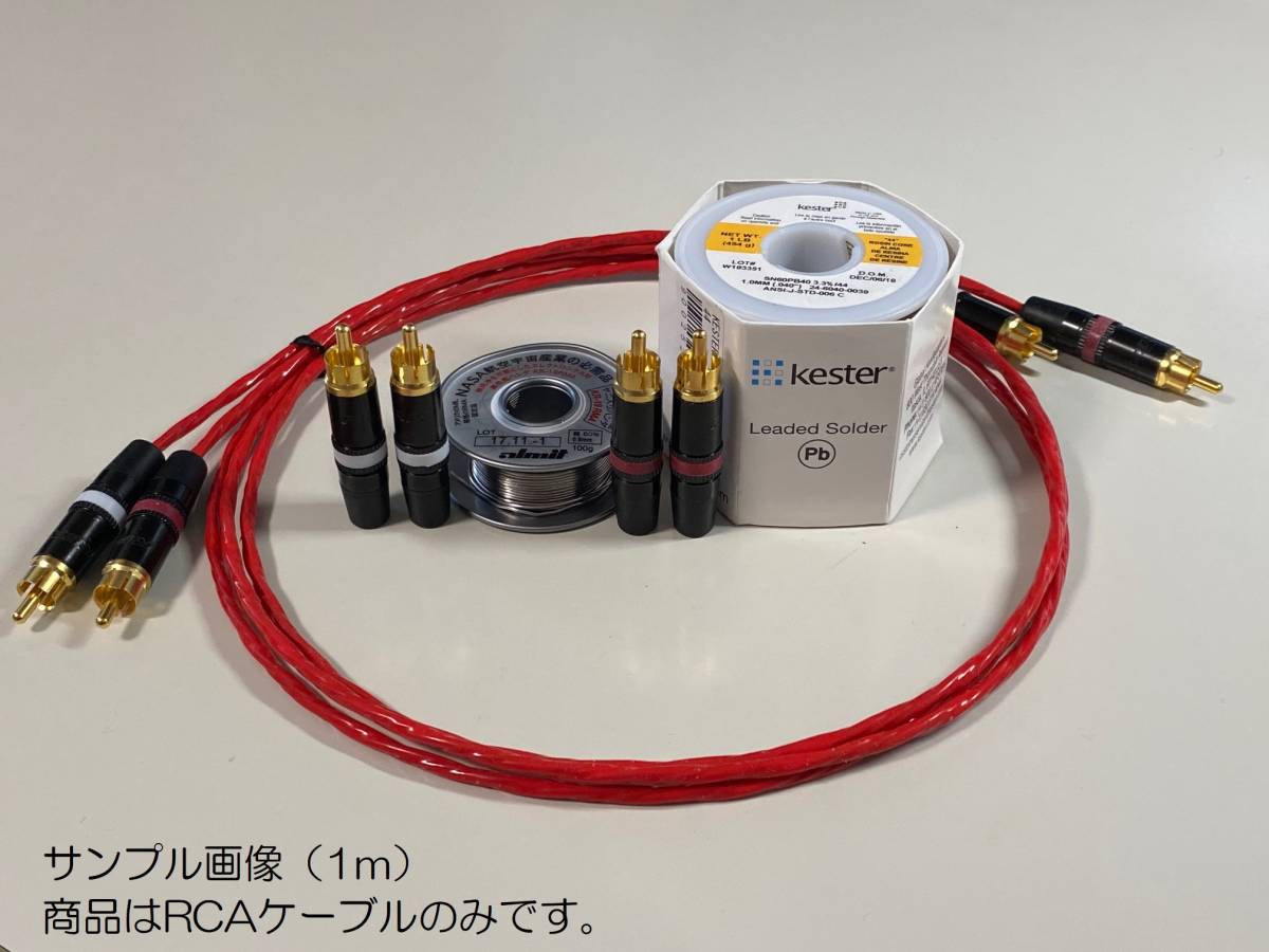 ケーブル色は 赤色 です。 ★ケーブル 米国ベルデン社 Model BELDEN 88760 を採用。 音質はフラットでクリアで聴きやすく癖がない。オーディオマニアに定評があるケーブルです。 ★プラグ リアンNYS-373 を採用。 接触部は金メッキで音質・耐久性・デザイン性に優れた高品質なプラグです。 ★ハンダ Kester44 もしくは 日本アルミットハンダKR-19RMA のどちらかをご指定ください。 ※ご指定なければKester44で製作いたします。 | ||||
