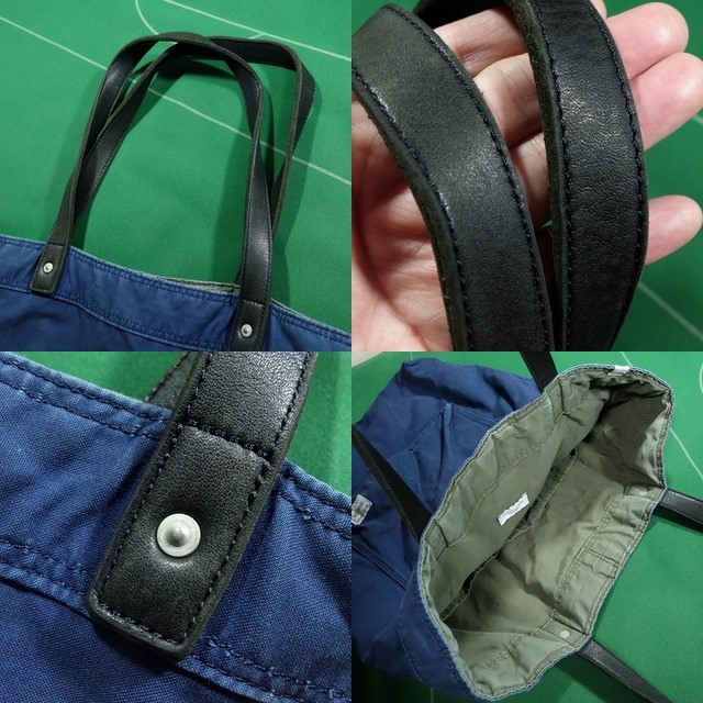 A3サイズ 縦長 トートバッグ インディゴブルー/カーキ 中古・美品です。