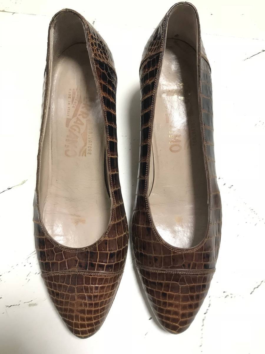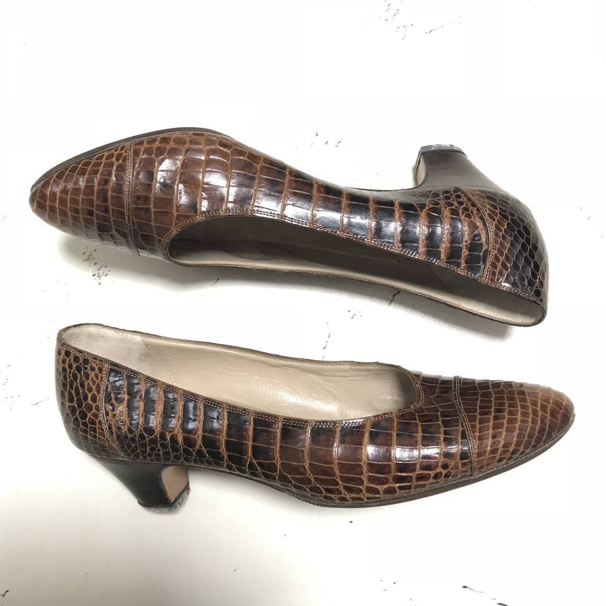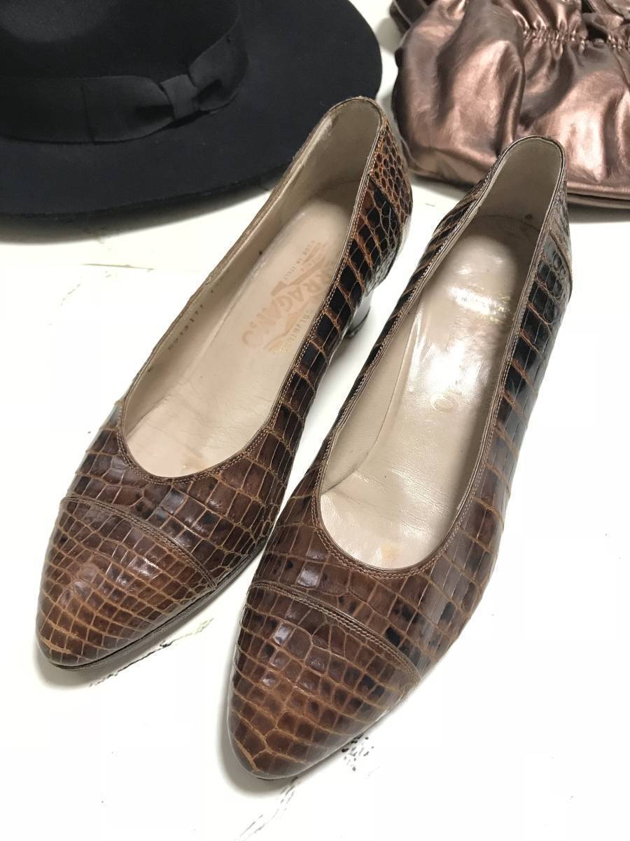 ★Salvatore Ferragamo フェラガモ クロコ型押し パンプス★size 6★レザー ブラウン★ |