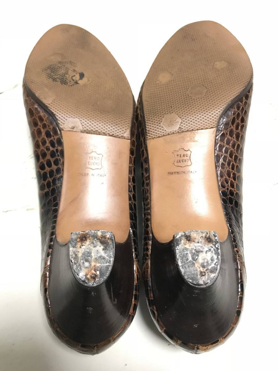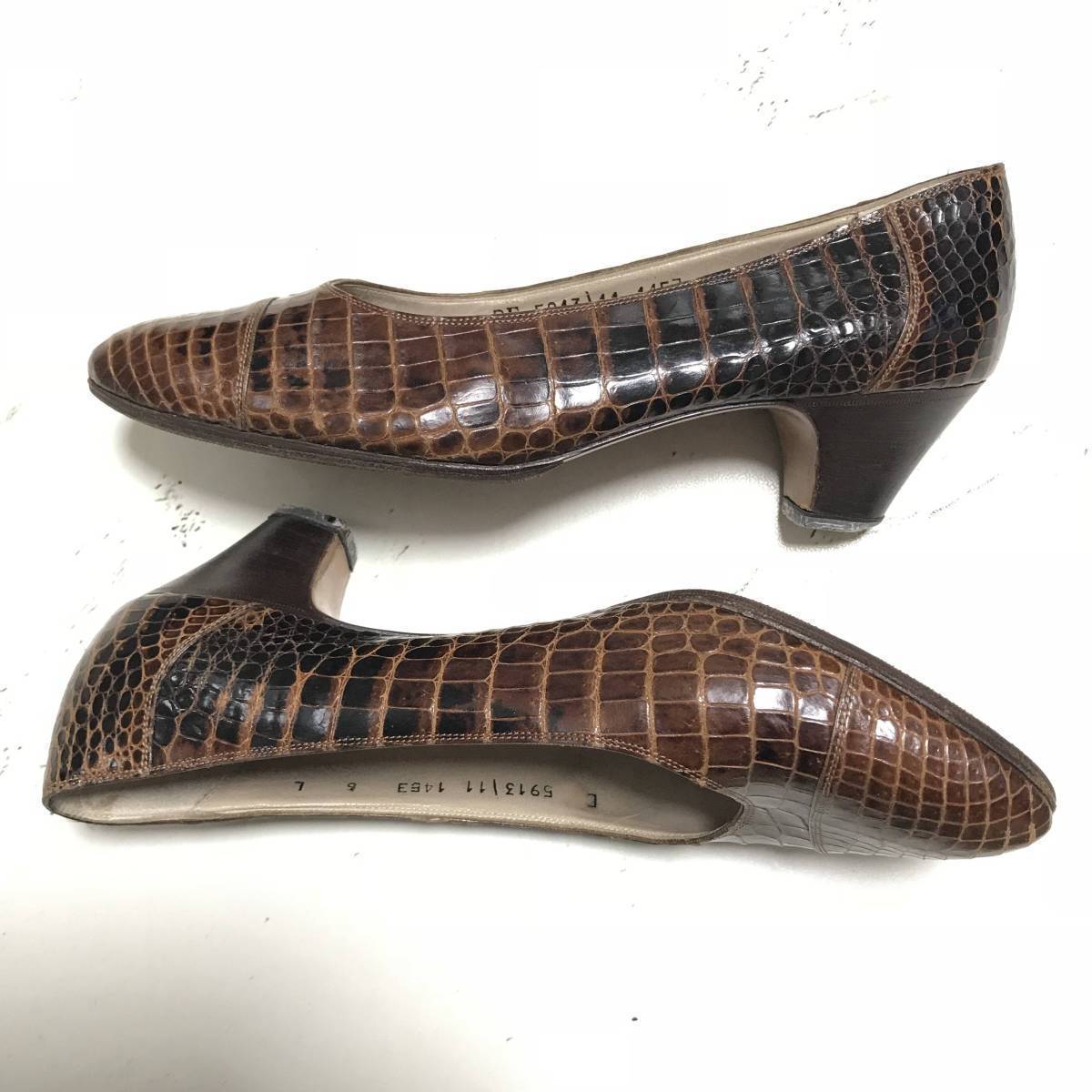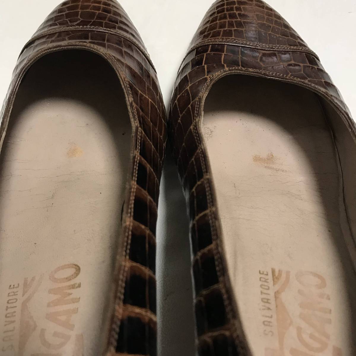 ★Salvatore Ferragamo フェラガモ クロコ型押し パンプス★size 6★レザー ブラウン★ |