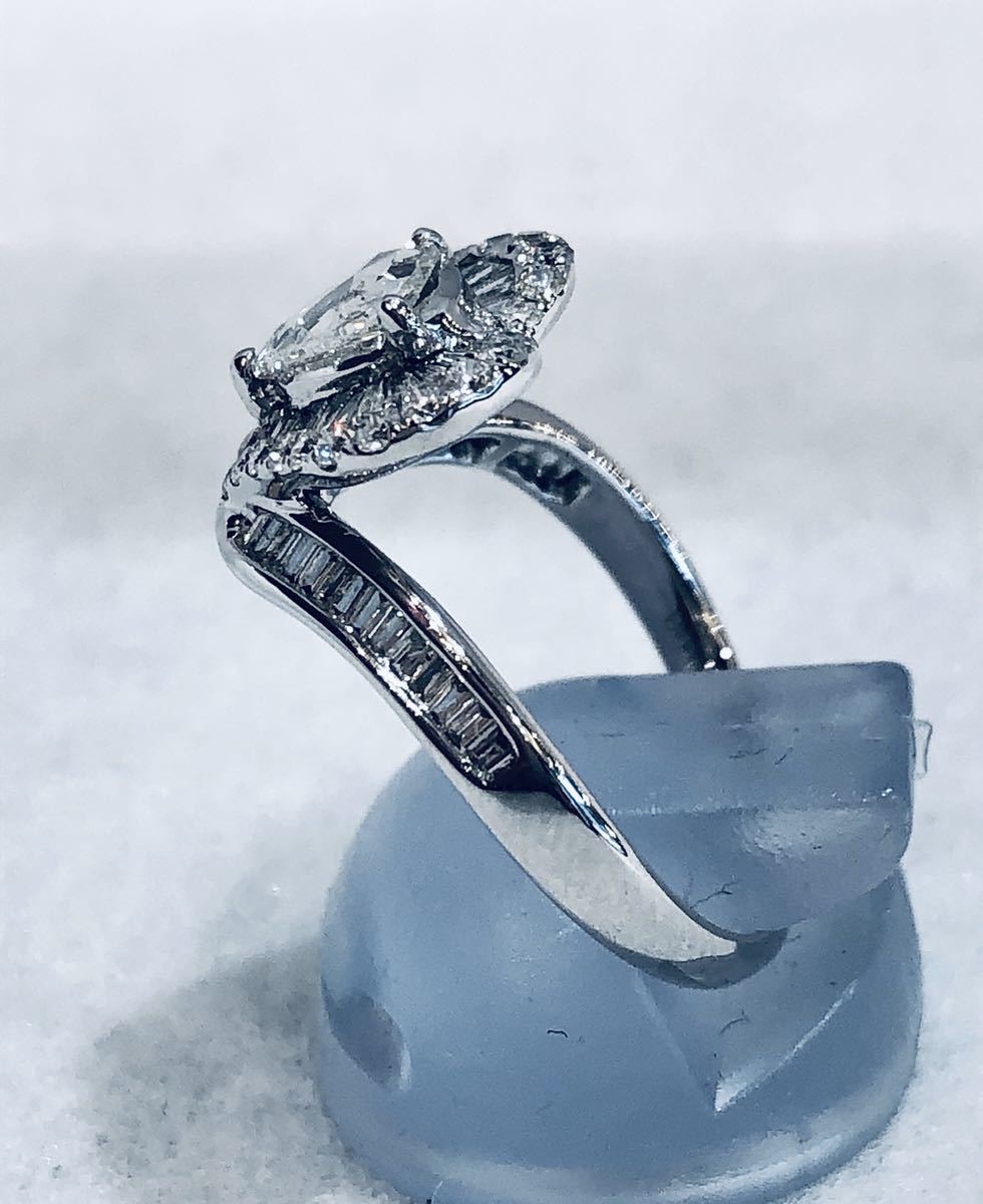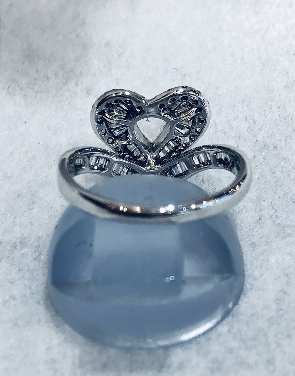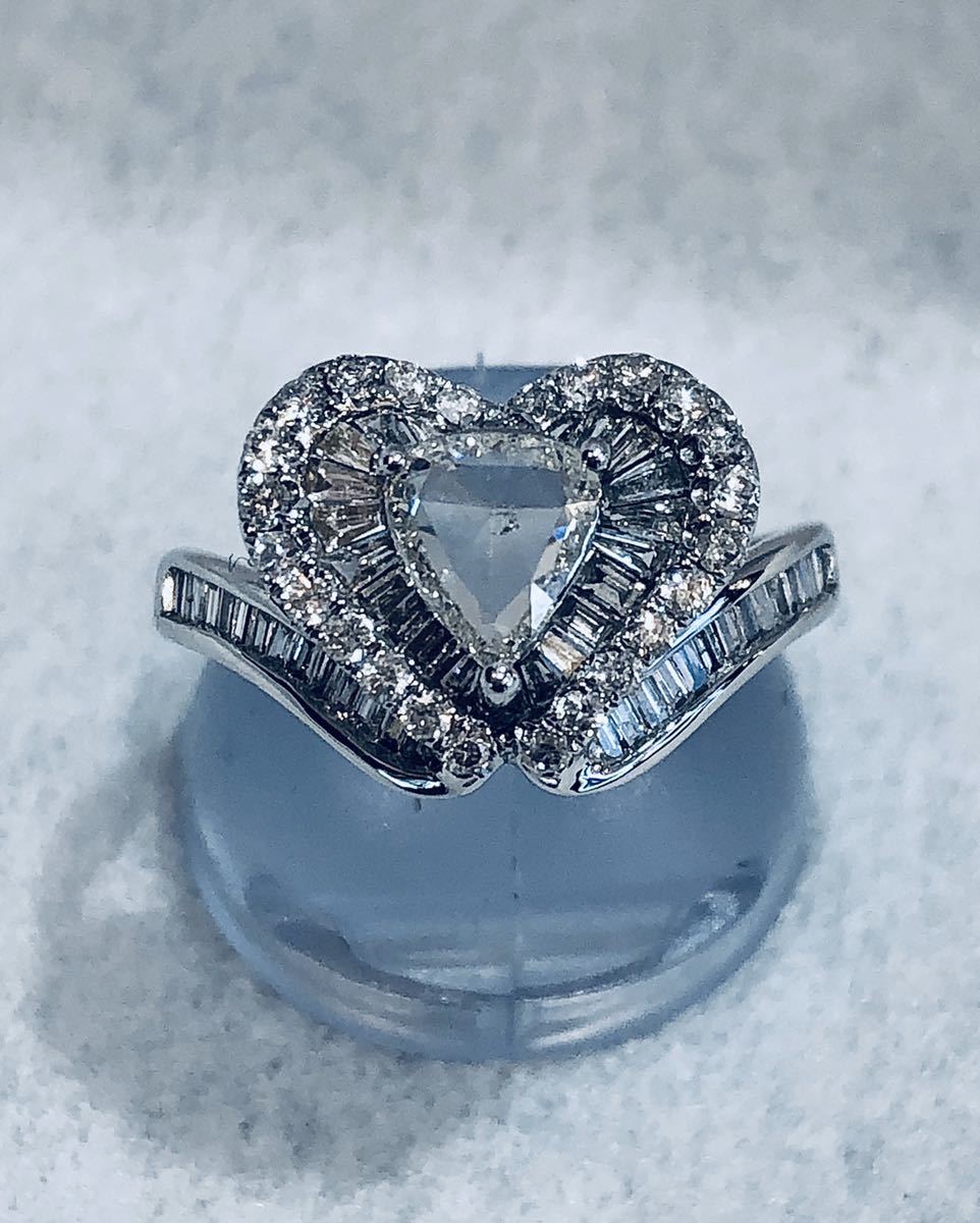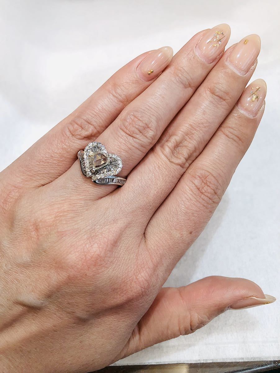 センター石にローズカットのダイヤモンドを使ったハートモチーフのリング