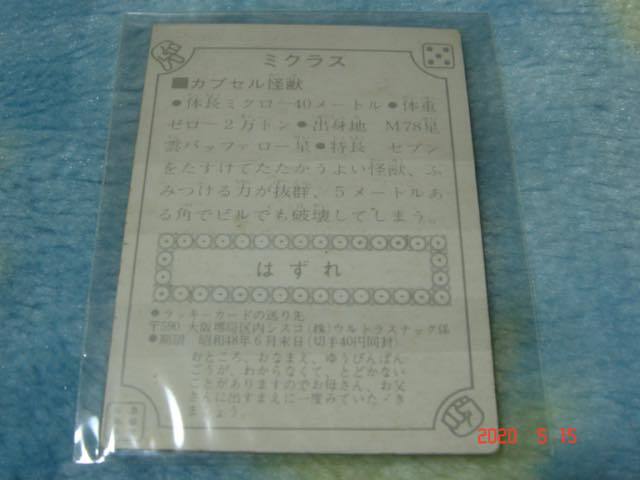 シスコ ウルトラセブン・カード 『ミクラス』 美品 B