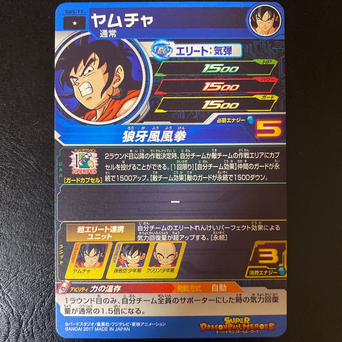 SH5弾コモン/ ヤムチャ(通常)/ SH5-13/ 技:狼牙風風拳/ スーパードラゴンボールヒーローズ/ レアリティ:☆/ 2017 BANDAI