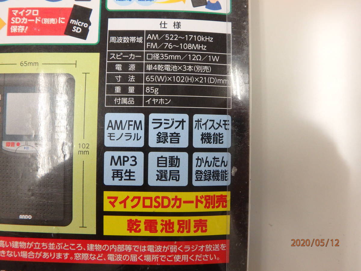 ラジオの予約録音ができるラジオ。箱に若干のスレがありますが、未使用未開封です。