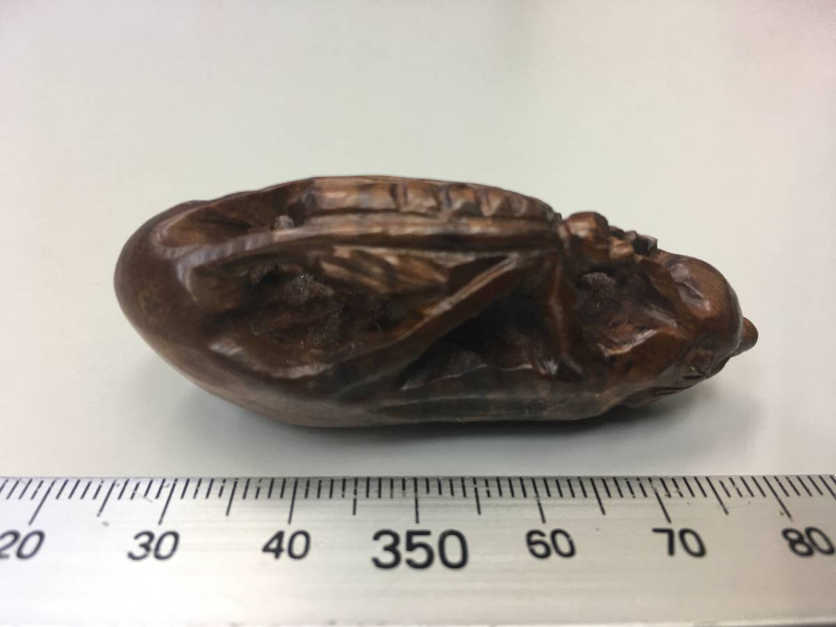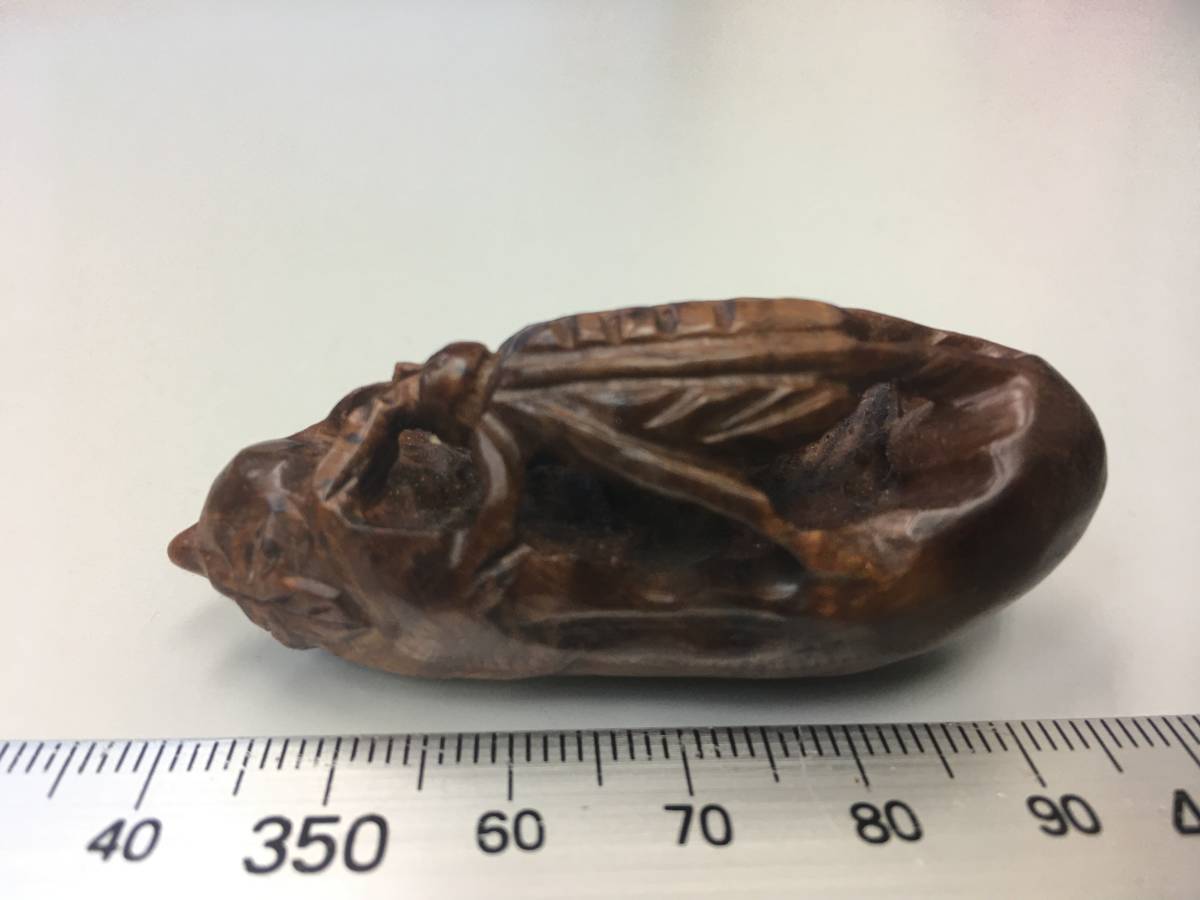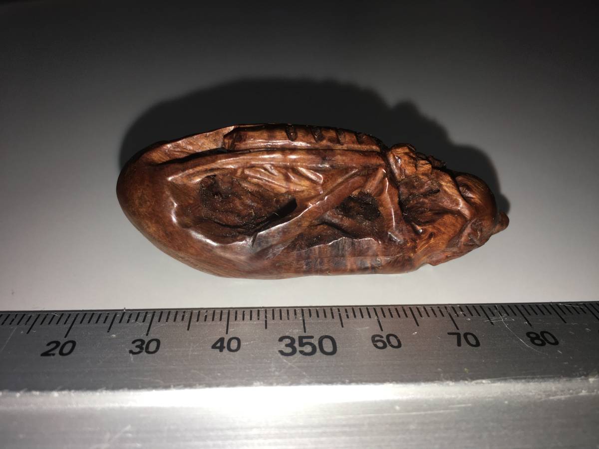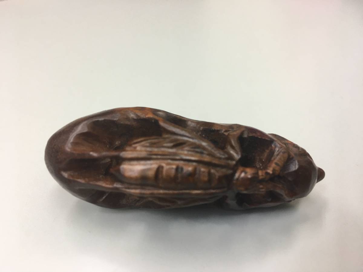 ★【逸品堂】★ 鈴虫 根付 提げ物 柘植 黄楊 楊枝 唐木 ツゲ 昆虫 スズムシ 細密 木調 彫刻 木製 貫通が有り 珍品 キーホルダー ストラップ