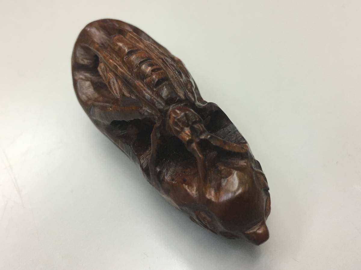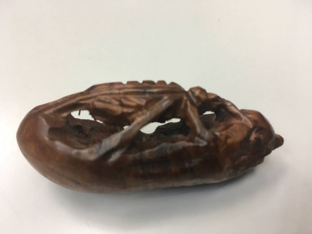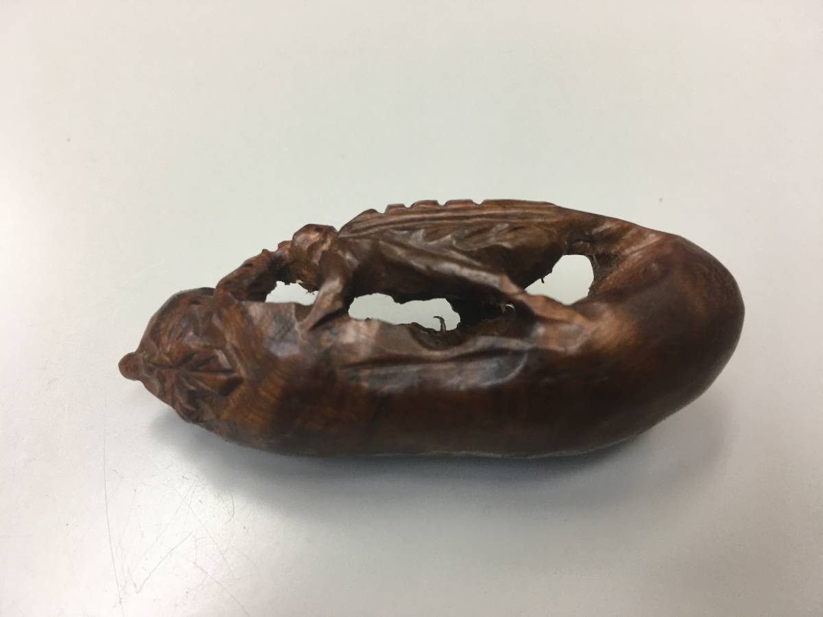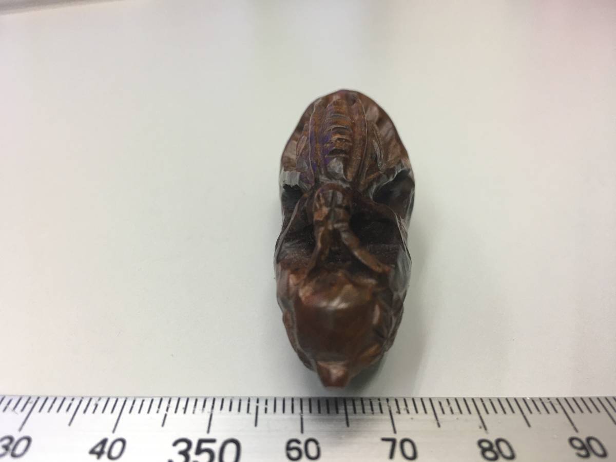 ★【逸品堂】★ 鈴虫 根付 提げ物 柘植 黄楊 楊枝 唐木 ツゲ 昆虫 スズムシ 細密 木調 彫刻 木製 貫通が有り 珍品 キーホルダー ストラップ