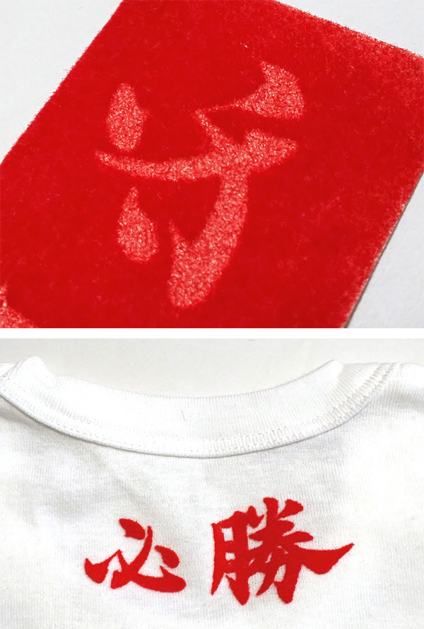 「必勝」の文字分を実験してみました。(見本は子供Tシャツの後ろえりです。)