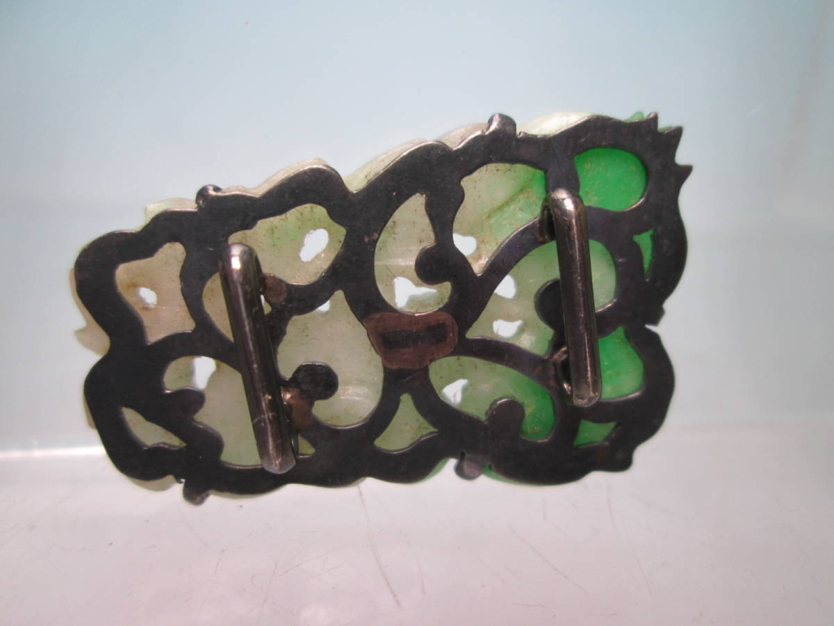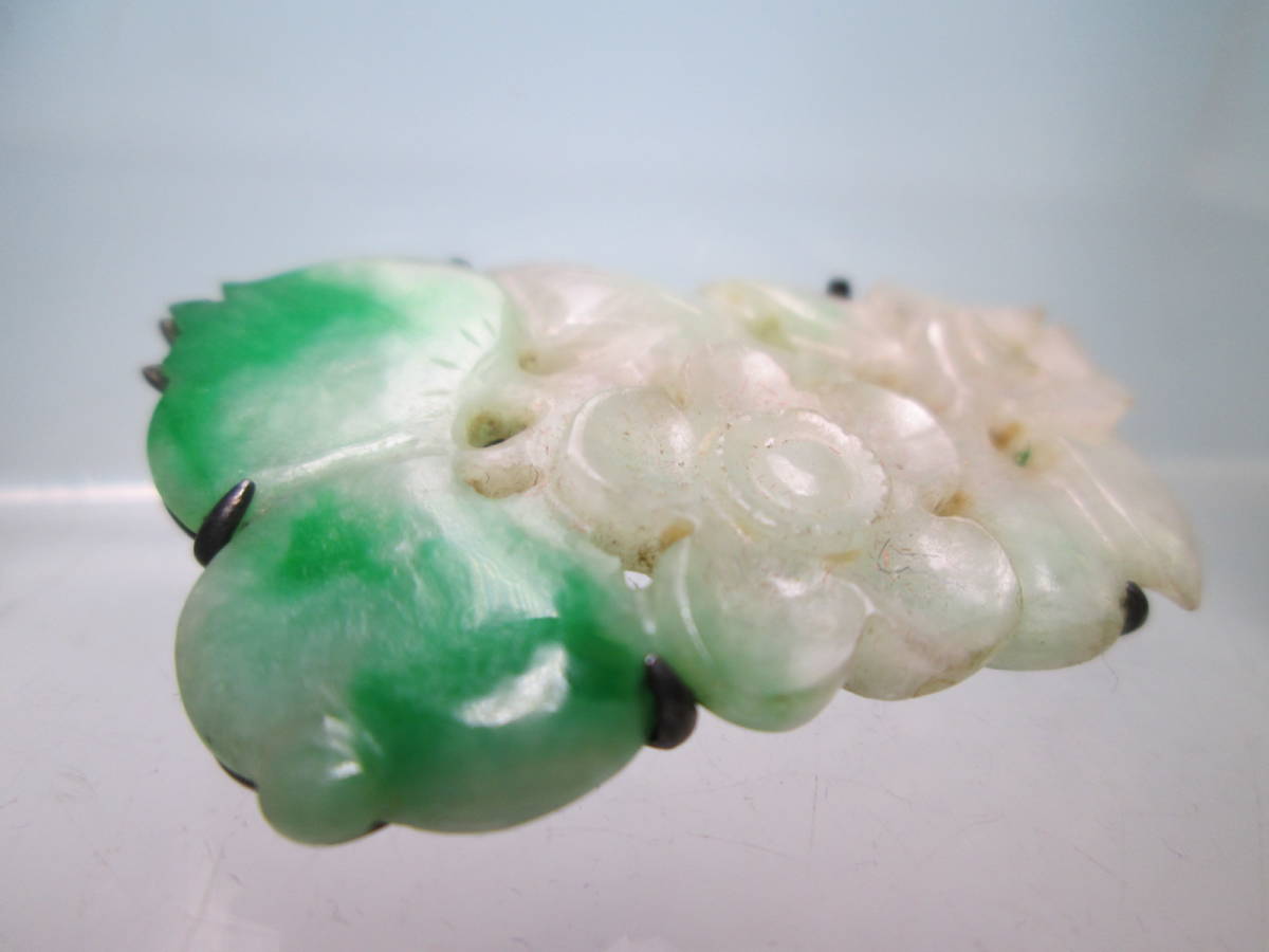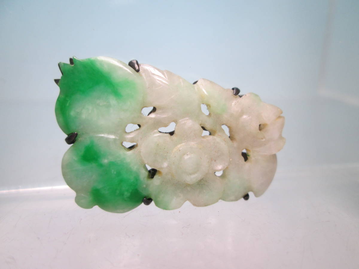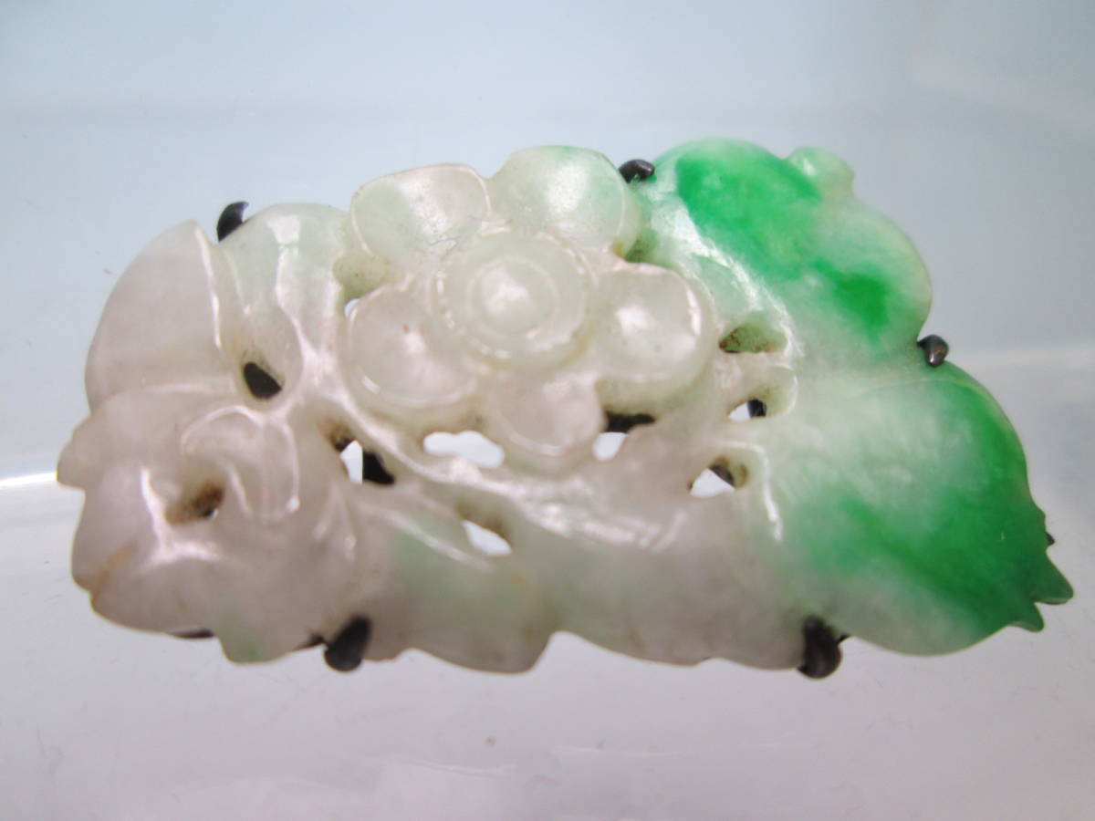 【江月】アンティーク・銀製 本翡翠 花透かし彫刻の帯留め 5,67g