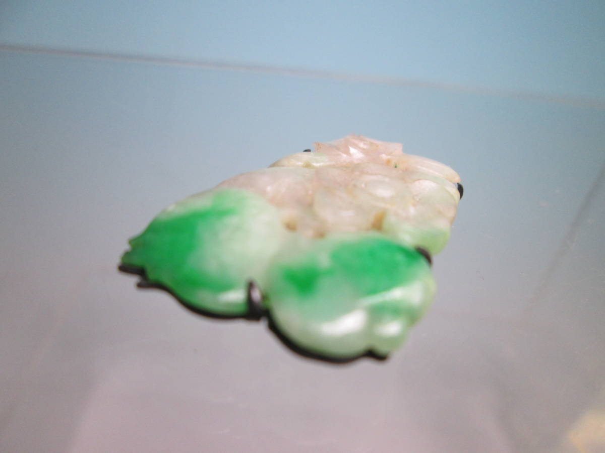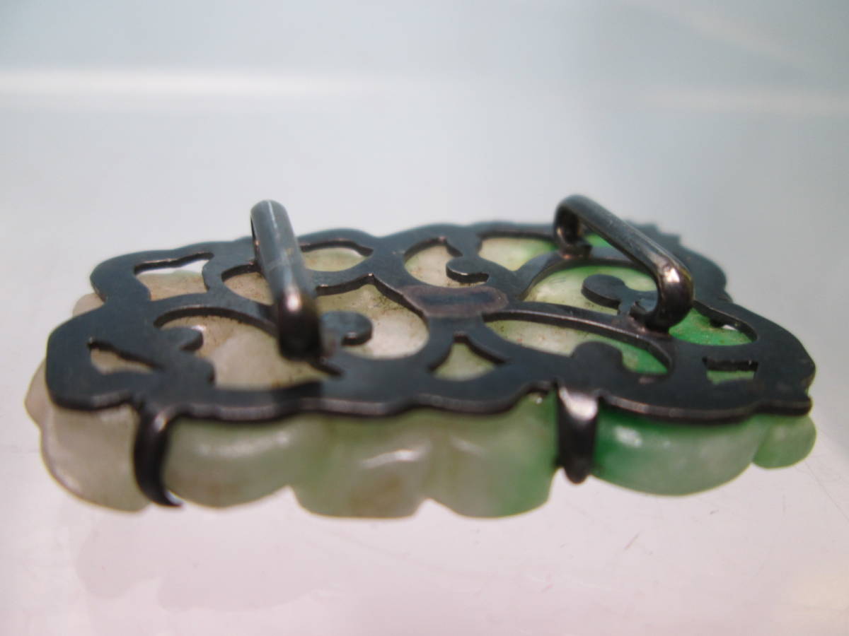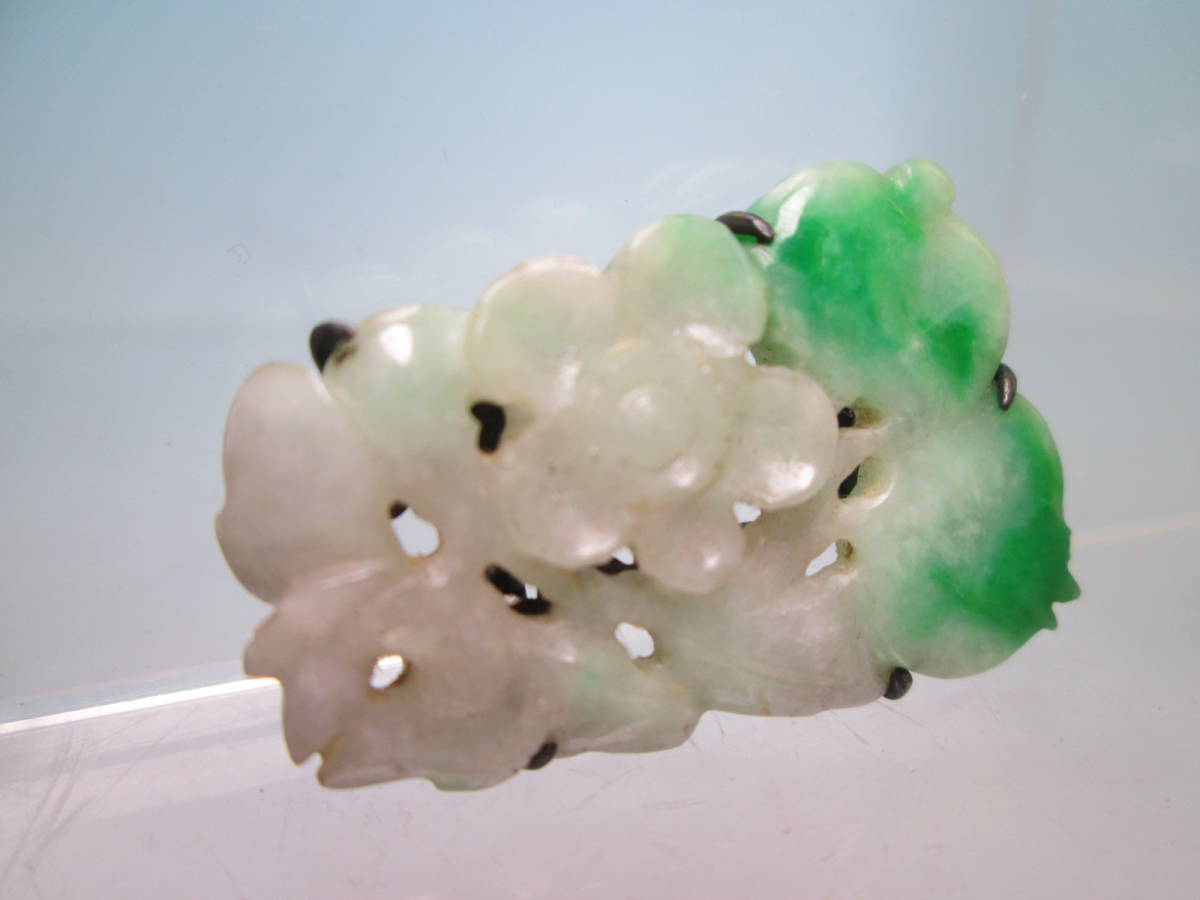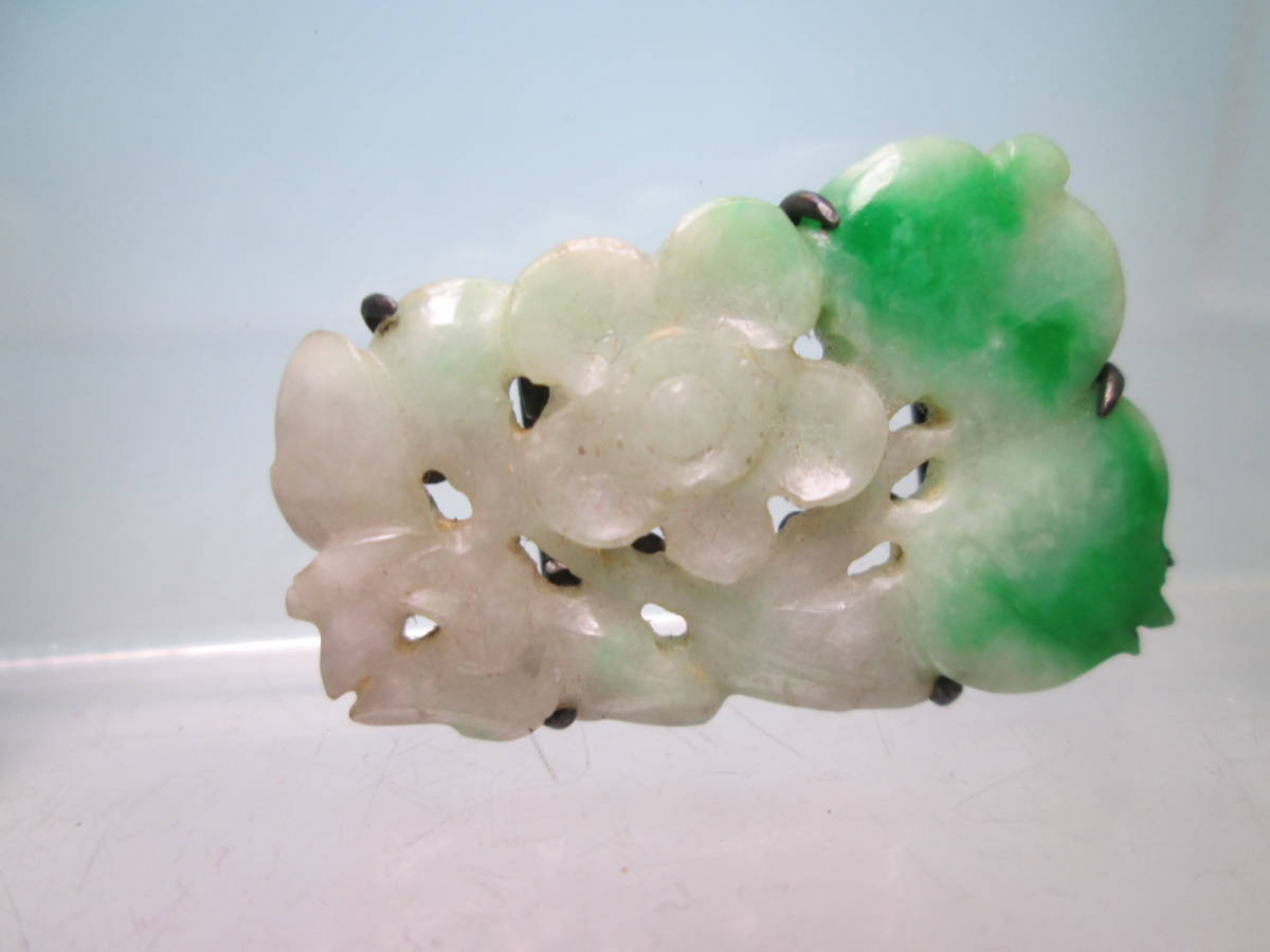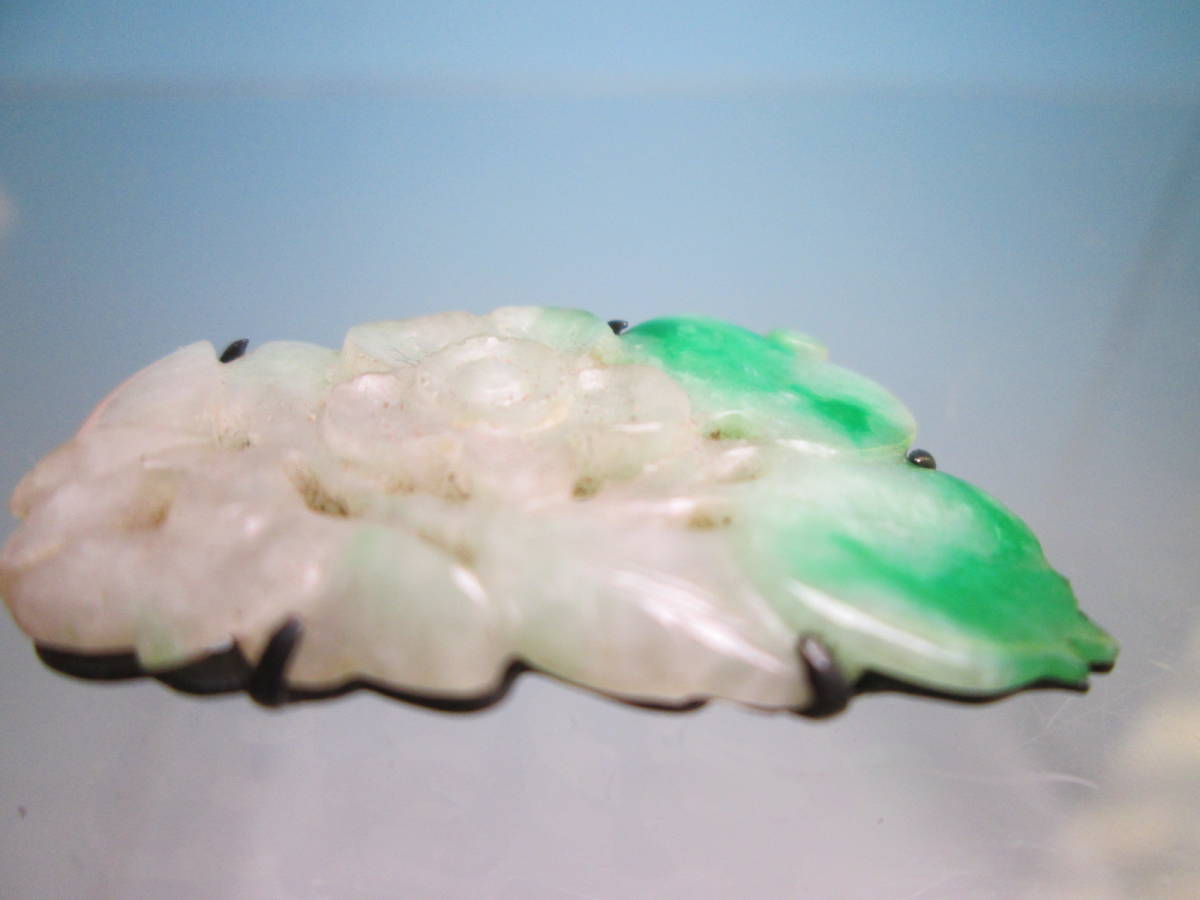 【江月】アンティーク・銀製 本翡翠 花透かし彫刻の帯留め 5,67g
