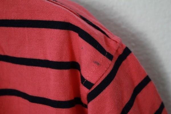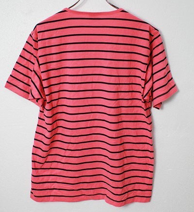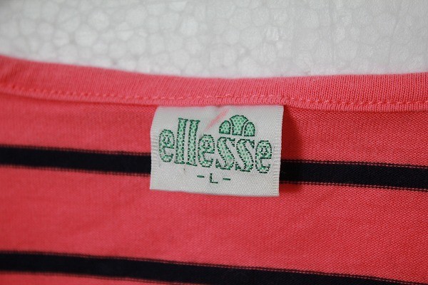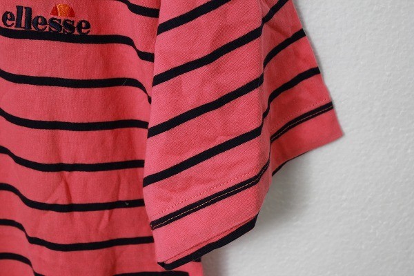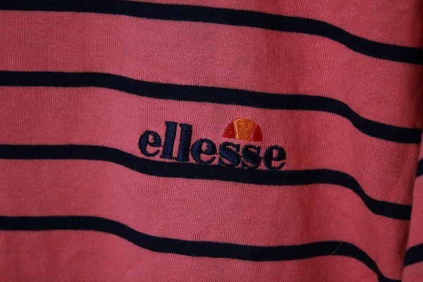 デッドストック 90's エレッセ ellesse ロゴ刺繍 コットン ボーダー Tシャツ 半袖 (L) ピンク×紺 90年代