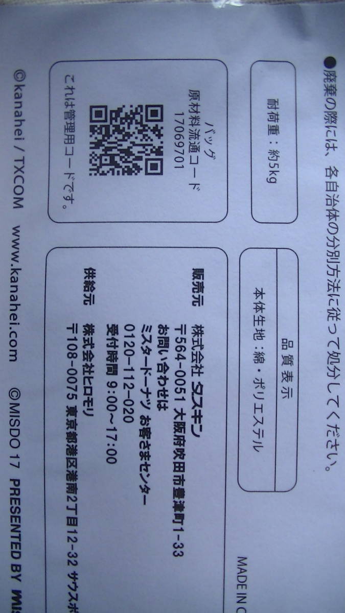 ミスタードーナツ × カナヘイ トートバック ★ 非売品