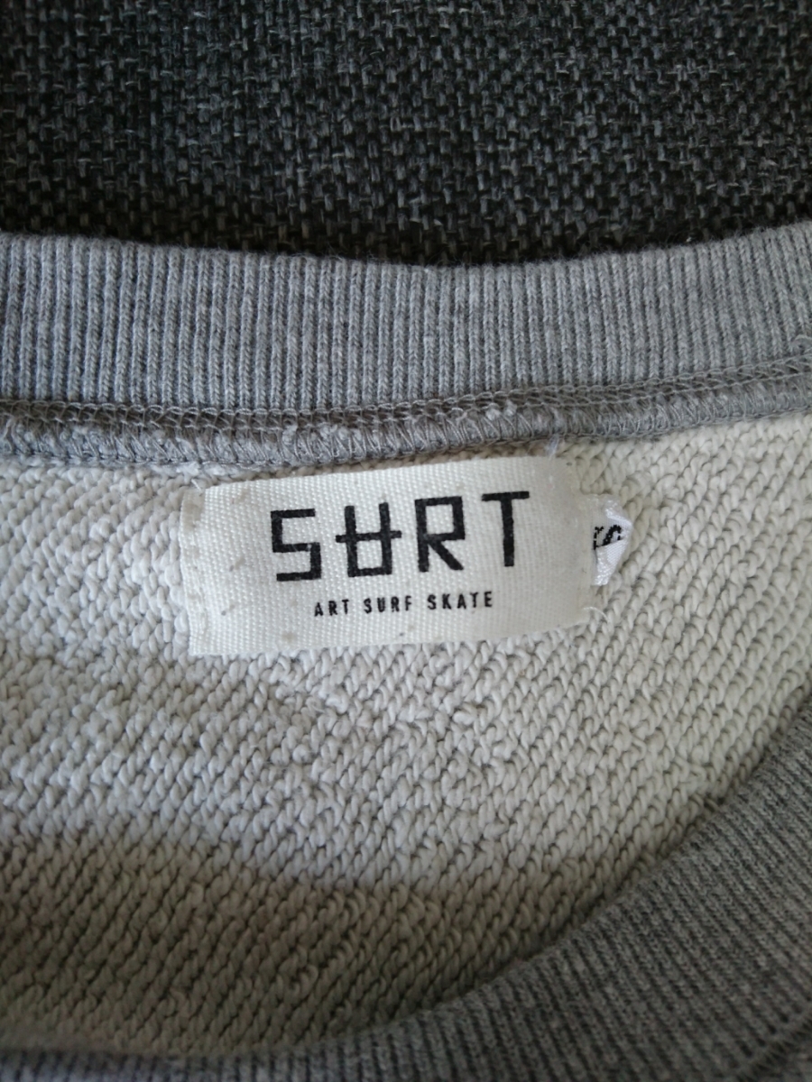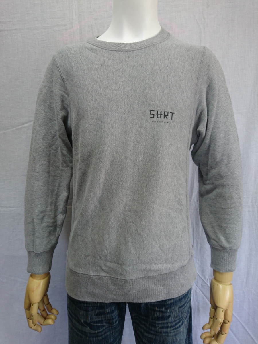 SURTのトレーナーになります。少し使用感ありますが、目立つシミやダメージなく綺麗な状態です。シンプルで、胸元のロゴがお洒落です。1枚でも、インナーとしても使いやすいです。人気商品の為、早い者勝ちです!