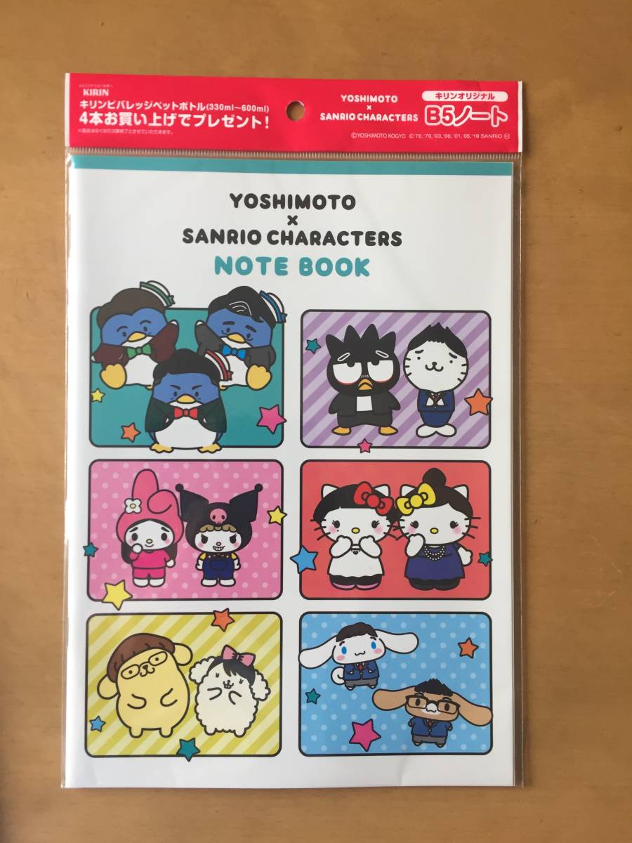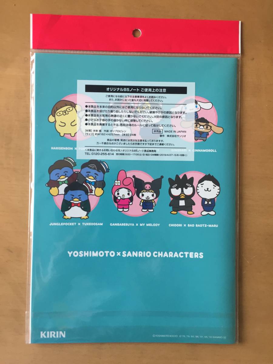 【非売品】KIRIN★吉本興業×サンリオ★キリンオリジナル・B5ノート(バッドばつ丸 マイメロディ タキシードサム他/白色・裏青緑)