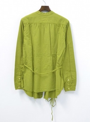 「bukht」のMONK SHIRTS。 ・素材:コットン100%。 ・カラー:SOPHORA。 ・サイズ:1(S)。 実寸・肩幅 約41.5cm・身幅 約55cm・着丈後ろ 約63.5cm・袖丈 約62.5cm。(多少の誤差はお許しください) 「bukht (ブフト)」とは中東で人々の暮らしの中で非常に重宝される存在の良質なラクダの事を指し、ブフトの様に人々に愛されるブランド創りと、様々な出会いを通じて一般的なドメスティックブランドの枠を越えた自由で、クリエイティブな場としてbukhtを立ち上げました。これまでの経験と良質な工場を活かし、ニーズに応えられるようなブランド創りに励んでいます。 こちらはボタンを一切付けず、ガウンに和服の要素を加味したような、柔らかな雰囲気があるシャツ「MONK SHIRTS」。 店舗限定モデルで、槐の草木染めで染め上げた独特な風合いのモンクシャツになります。 100番単糸を使用したこの生地は糸が細くしなやかな為、低速で動くシャトル織り機により密度を詰まらせてゆっくりと丁寧に織られています。 後加工で特殊加工を施し生地を微起毛させることにより、長年着古したようなしなやかさと肌触りを生み出しております。 ウエストにはコードが通されており、和服のようにラフに着こなせる1着です。 大きめなサイドスリットや、裾の切りっぱなしのラフな仕上げもポイントになっています。 着丈は長めの仕様で、バックのギャザーを多く取り、しっかりと広がりのあるバックスタイルにしています。 bukhtらしい落ち感のあるシルエットも楽しんでいただける1枚です。 日本製。定価¥24000+TAX。 新品。タグ付。 かなりお値打ちだと思います。この機会にぜひ!。 他にもいろいろ出品しています。 管理番号:021907MY-084746 ★ PD102511-500 |