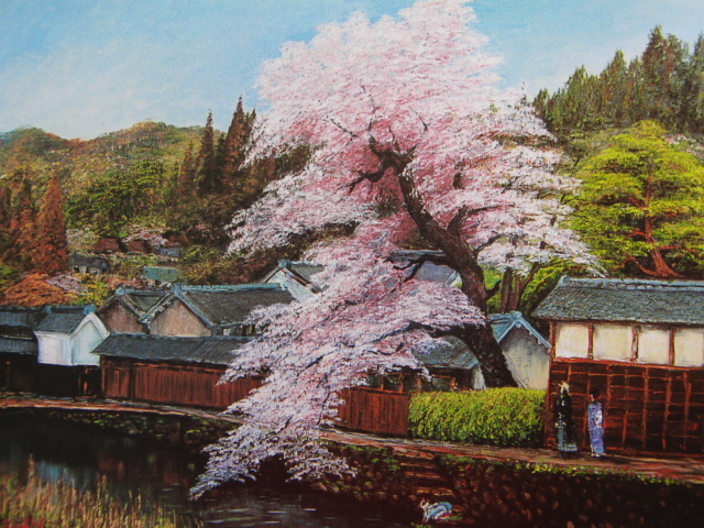 平林喜市、【遠山櫻】、希少画集画、風景、自然、さくら、桜、人気作家、新品額・額装付、送料無料、lap