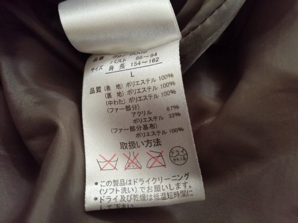 ak30 ■ CINEMA ■ コート アウター フード ジップ 中わた入り ダウン風 フェイクファー リアルファー カーキグリーン L