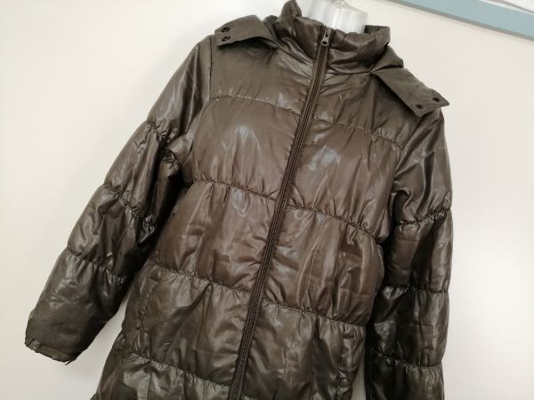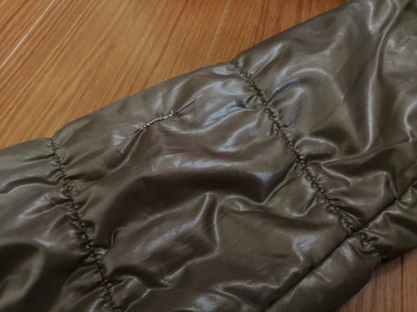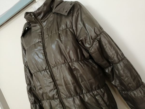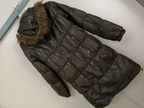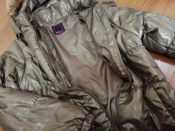 渋めのカーキグリーンの中わた入りコートです。ファー部分のみ取り外しできます。