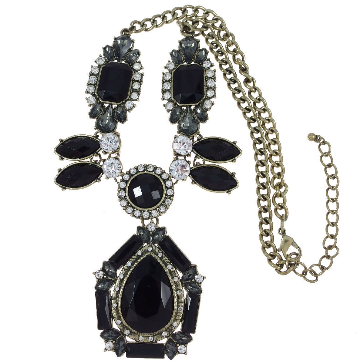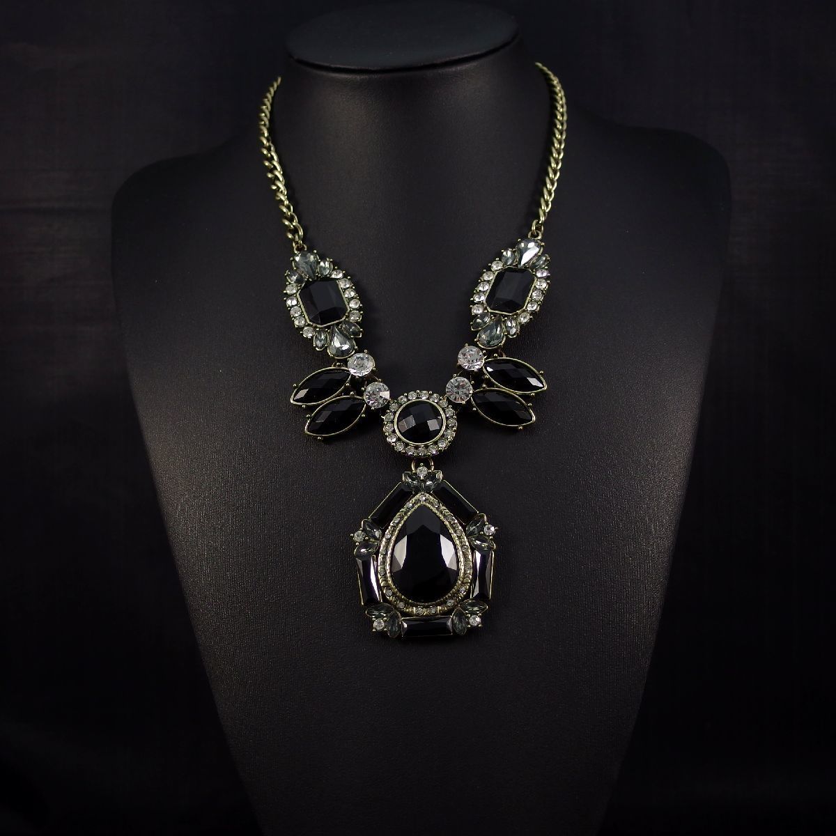 A3097◆ ブラック&クリアラインストーンの豪華なトップのネックレス ◆ 長さ約42㎝ ◆