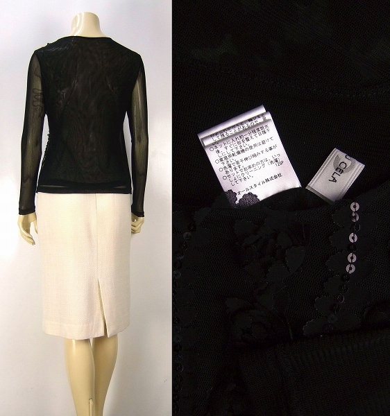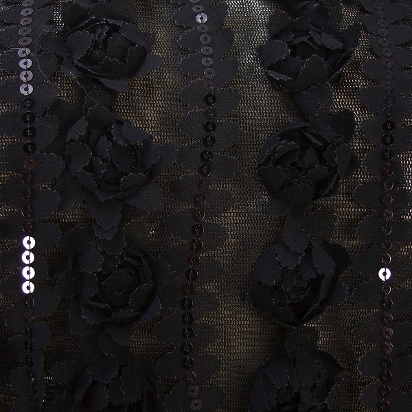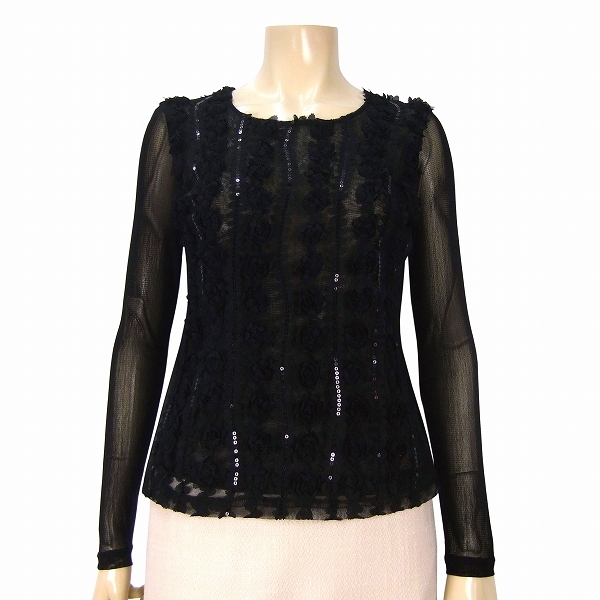 H 新品同様★CECI OU CELA セシオセラ★美黒*高級シルク(絹)100%生地*煌スパンコール×花モチーフ*高貴チュールカットソー*★38(M*9号相当)