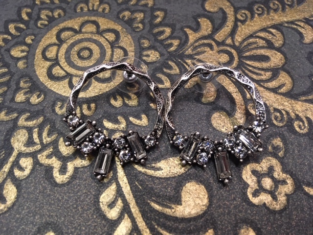 新品 アンティーク調 クラッシック ラインストーンリングピアス SIL