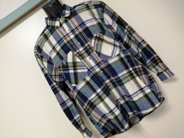 kkyj2848 ■ ACTIVE SCENE ■ シャツ トップス 長袖 チェック 紺×白 ネイビー Lサイズくらい