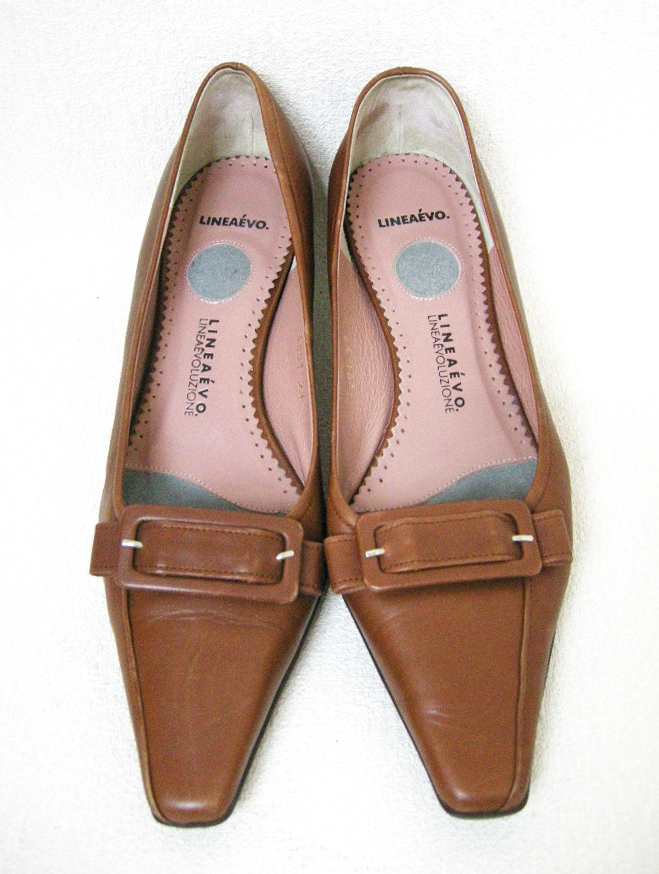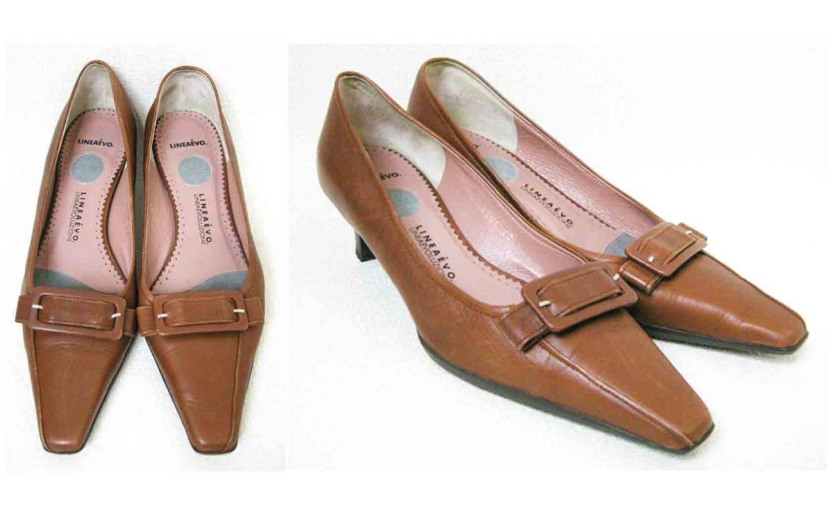 ■LINEAEVO【リネア】茶 革 レザー パンプス 23